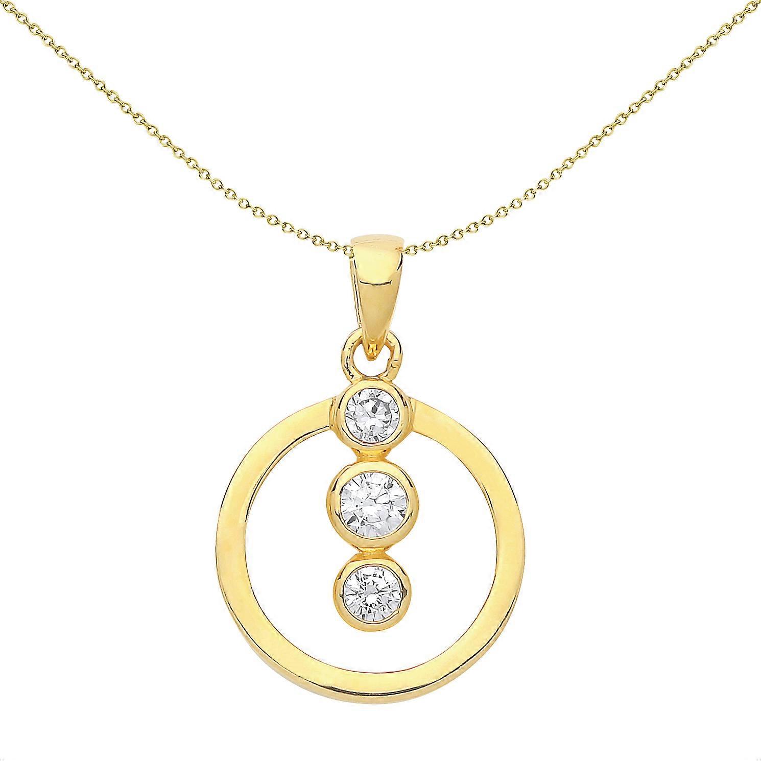 Jewelco London Ladies Yellow Gold-Plated Sterling Silver Cubic Zirconia Trilogy Hoop Pendant Necklace 18 inch