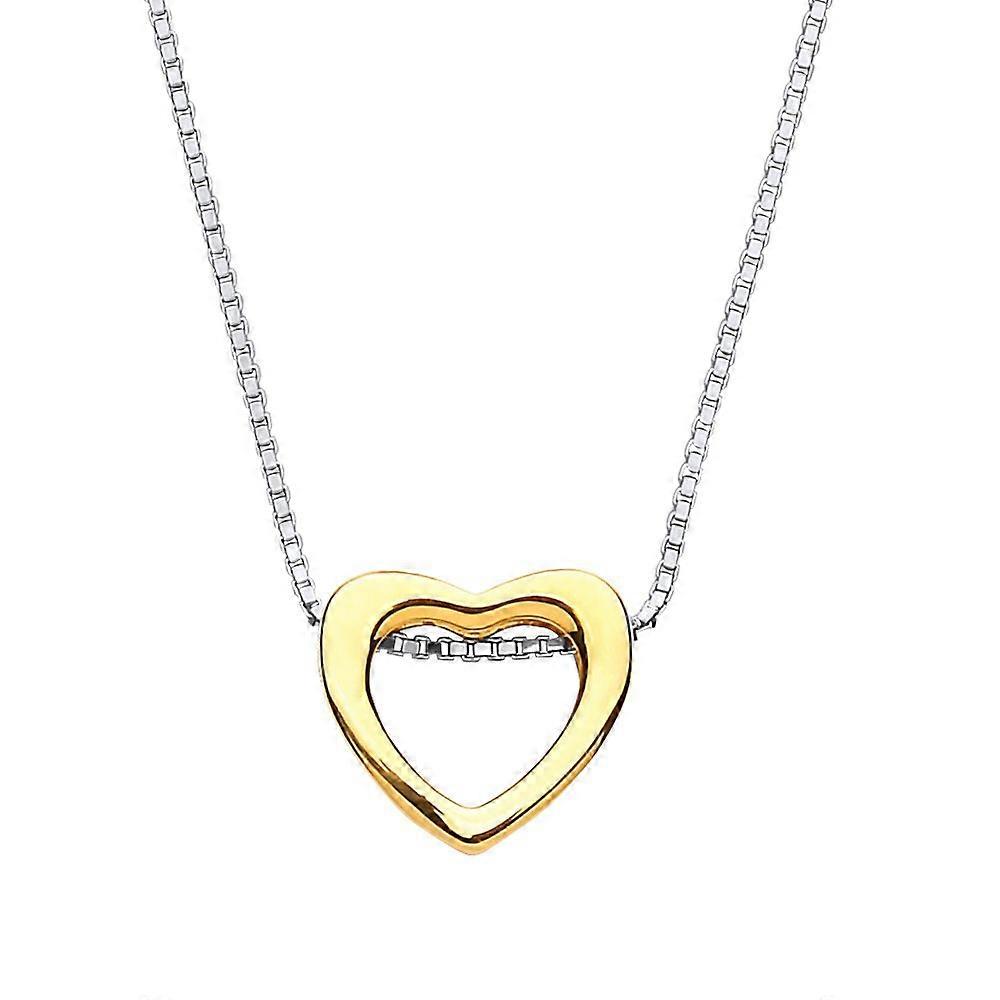 Jewelco London Ladies Yellow Gold-Plated Sterling Silver Love Heart Halo Charm Necklace 16 + 2 inch