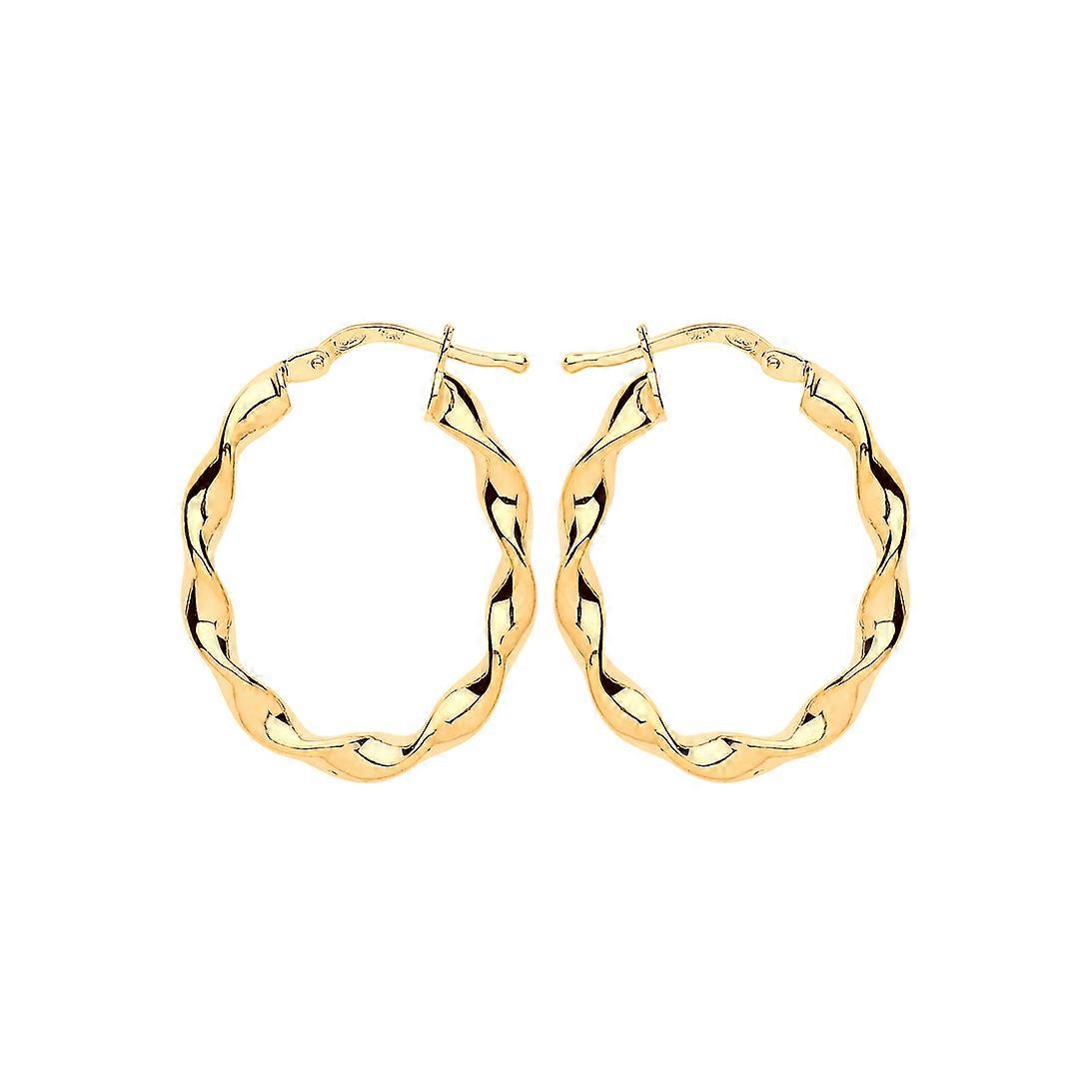 Jewelco London Ladies Yellow Gold-Plated Sterling Silver Ribbon Twist Oval Hoop Earrings 21mm x 27mm