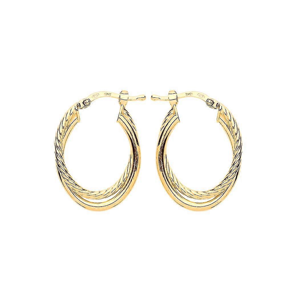 Jewelco London Ladies Yellow Gold-Plated Sterling Silver Twist Double Oval Hoop Earrings