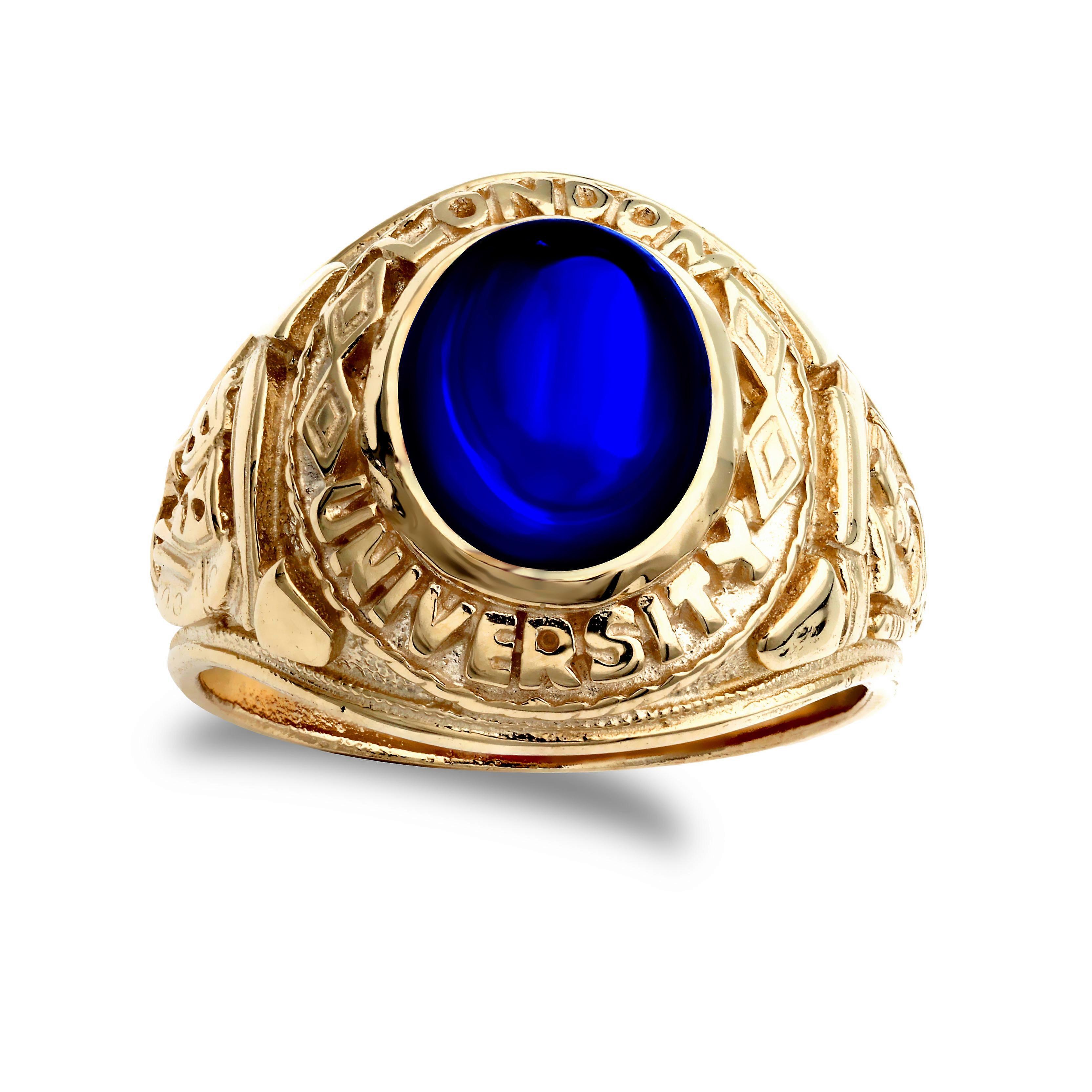 Jewelco London Mens 9ct Gold Sapphire-Blue Oval Cabochon CZ Solitaire University College Ring