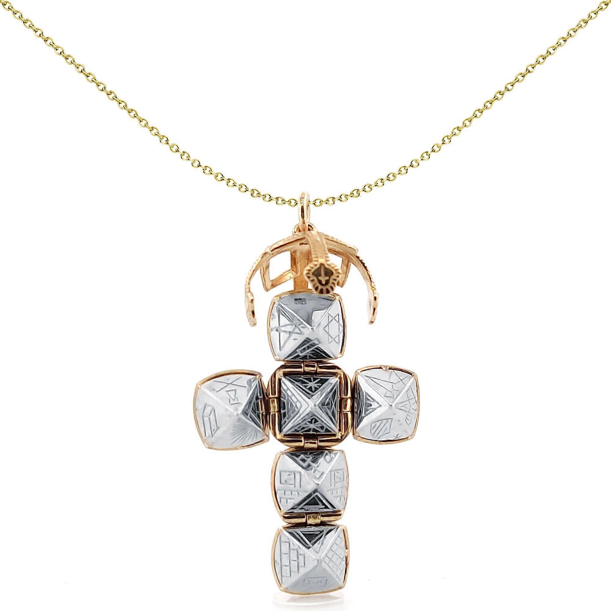 Jewelco London Men's 9ct Gold Silver Large Globe Cross Masonic 16mm Orb Ball Pendant