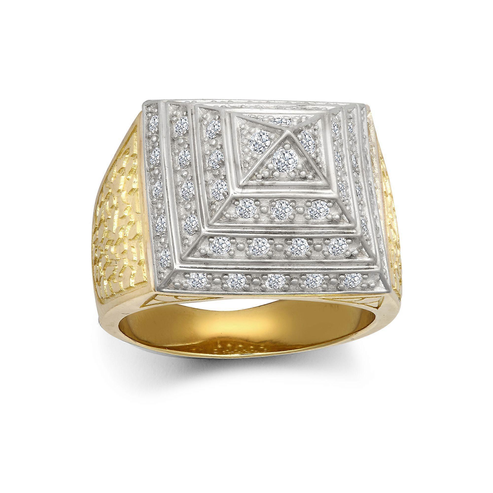 Jewelco London Men's 9ct Yellow and White Gold White Cubic Zirconia Egyptian Pyramid 1/2oz 20mm Signet Ring