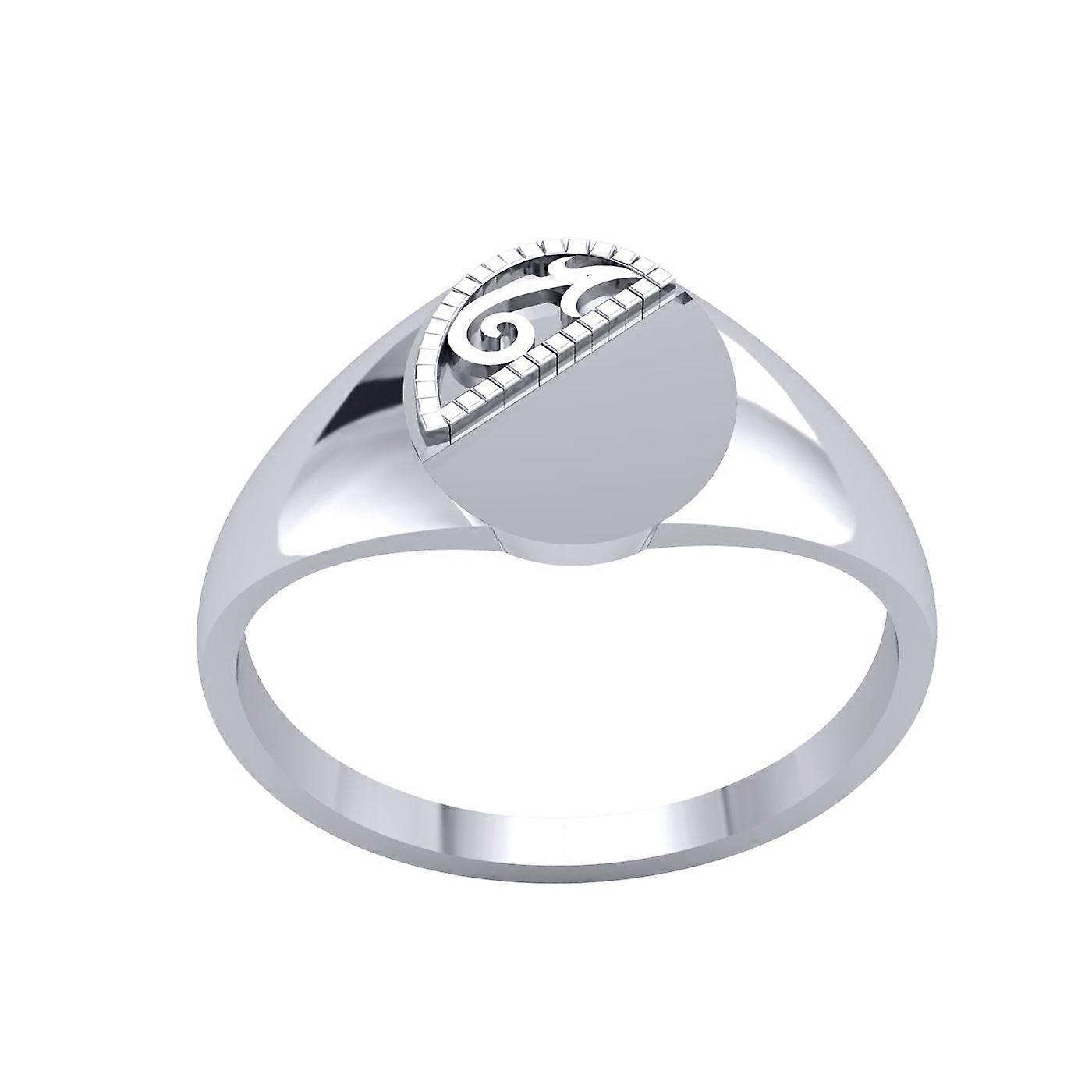Jewelco London Mens Platinum Plated Sterling Silver Domed Semi Engraved Oval Signet Ring