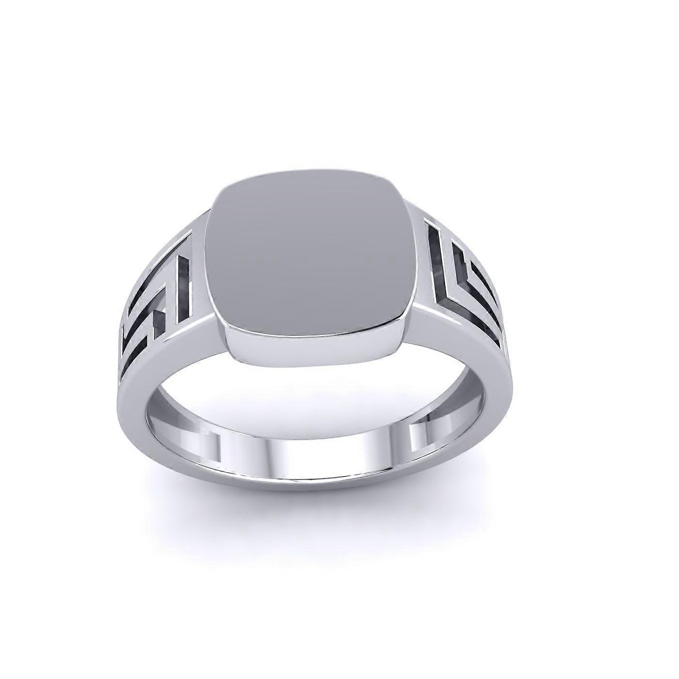 Jewelco London Mens Platinum Plated Sterling Silver Greek Key Square Cushion Signet Ring