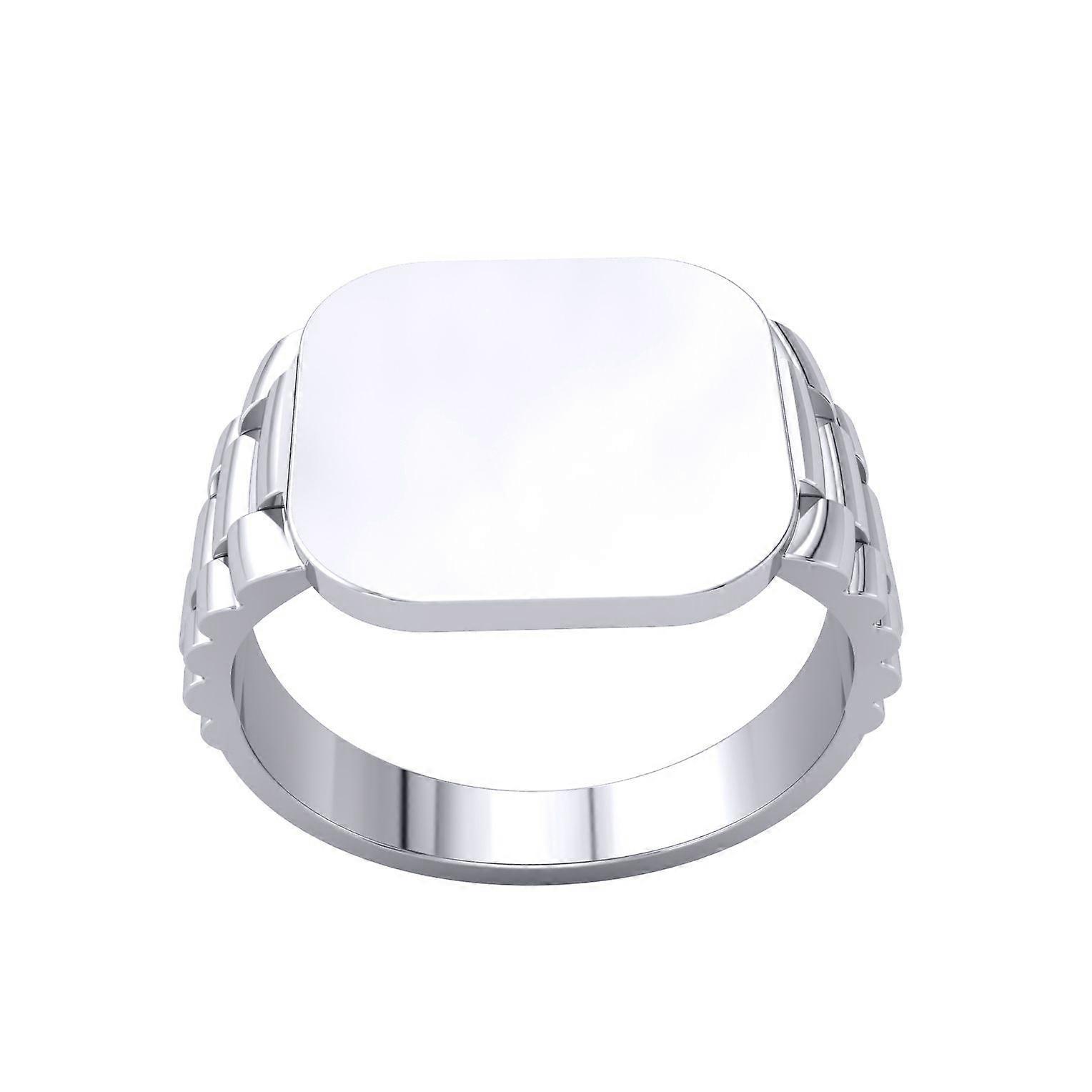 Jewelco London Mens Platinum Plated Sterling Silver Presidential Link Watch Strap Square Cushion Signet Ring