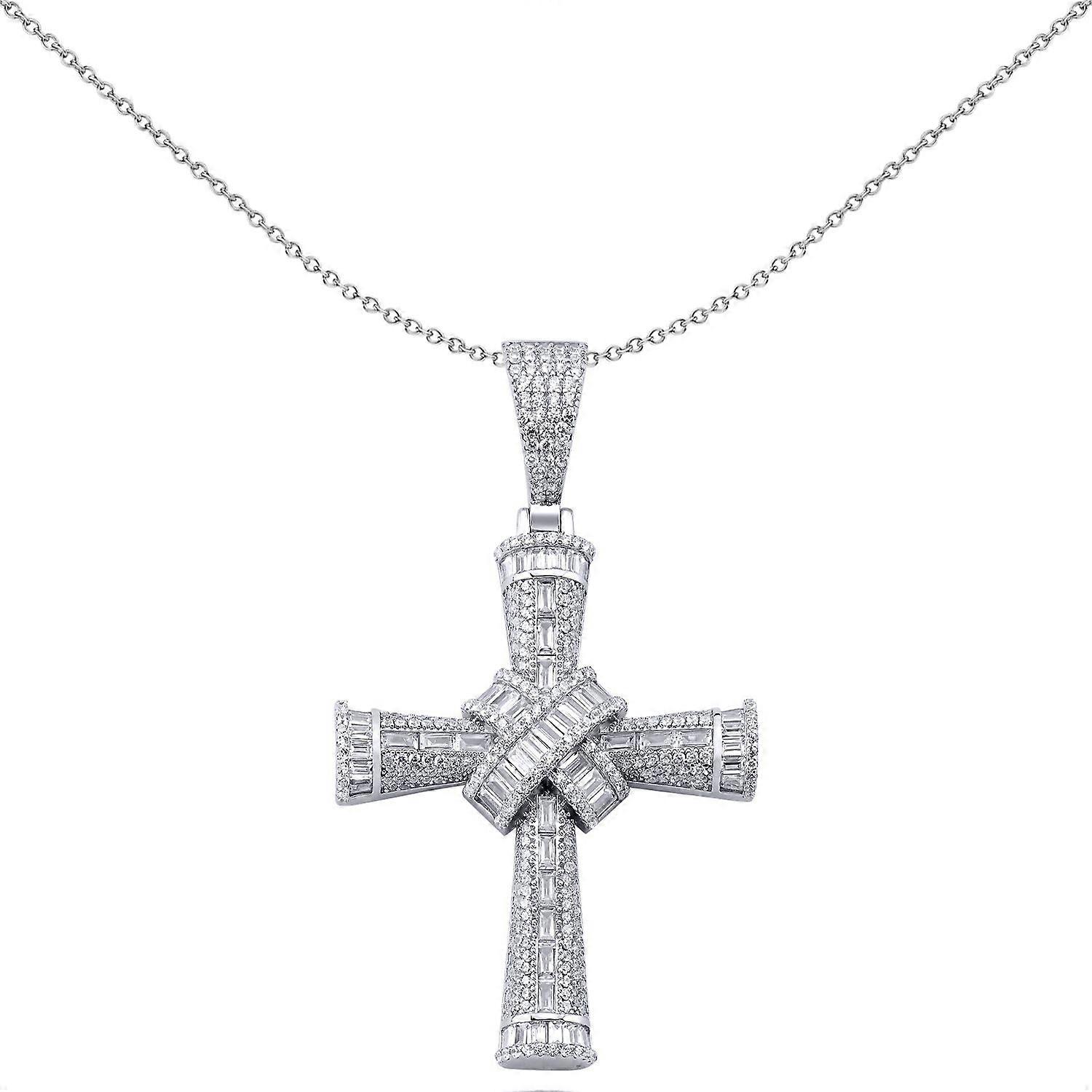 Jewelco London Men's Rhodium Plated Sterling Silver Baguette Cubic Zirconia Art Deco Byzantine Kiss Bandolier Cross Pendant