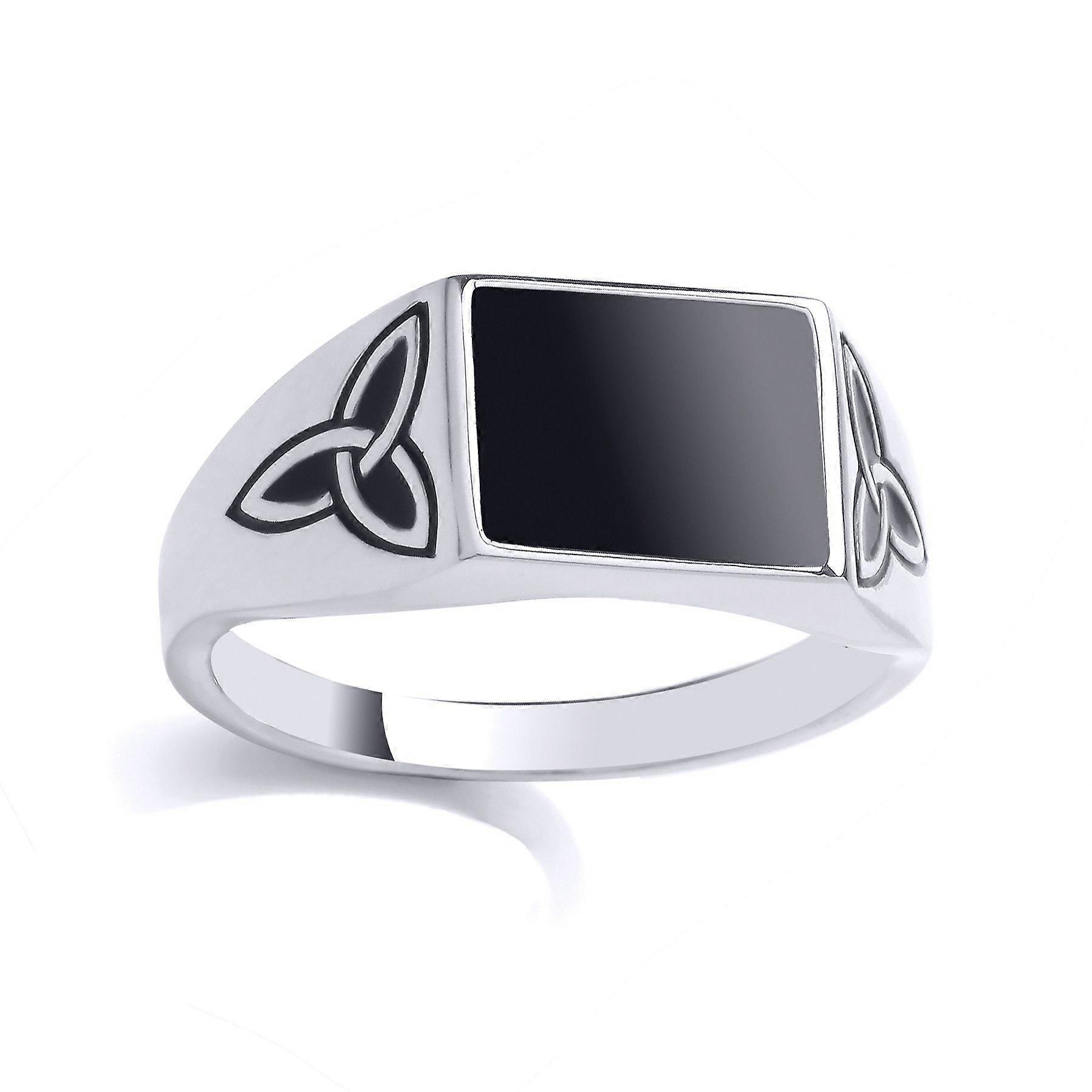 Jewelco London Mens Rhodium Plated Sterling Silver Black Radiant Onyx Trinity Knot Rectangular Signet Ring