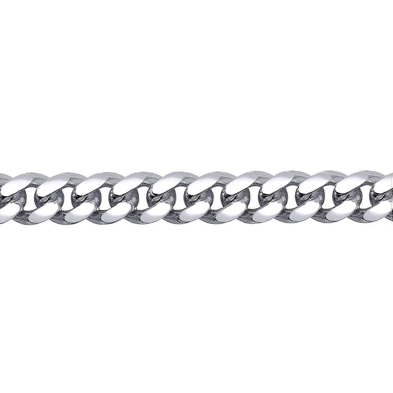 Jewelco London Men's Rhodium Plated Sterling Silver Domed Curb Cuban 7.5mm Chain Bracelet, 9 inch 23cm
