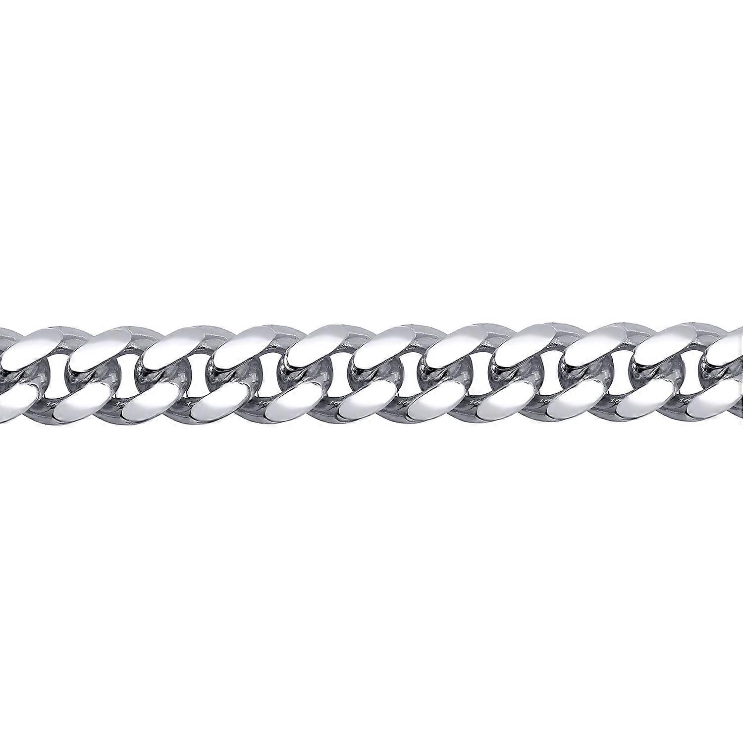 Jewelco London Men's Rhodium Plated Sterling Silver Domed Curb Cuban 7.5mm Chain Necklace