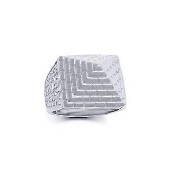Jewelco London Men's Rhodium Plated Sterling Silver Egyptian Pyramid 20mm Signet Ring