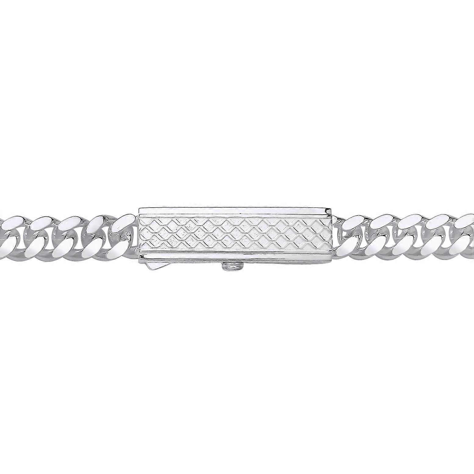 Jewelco London Mens Rhodium Plated Sterling Silver Engine Turned Rectangular Bar Buckle Curb Chain Bracelet 9mm 8.5 inch