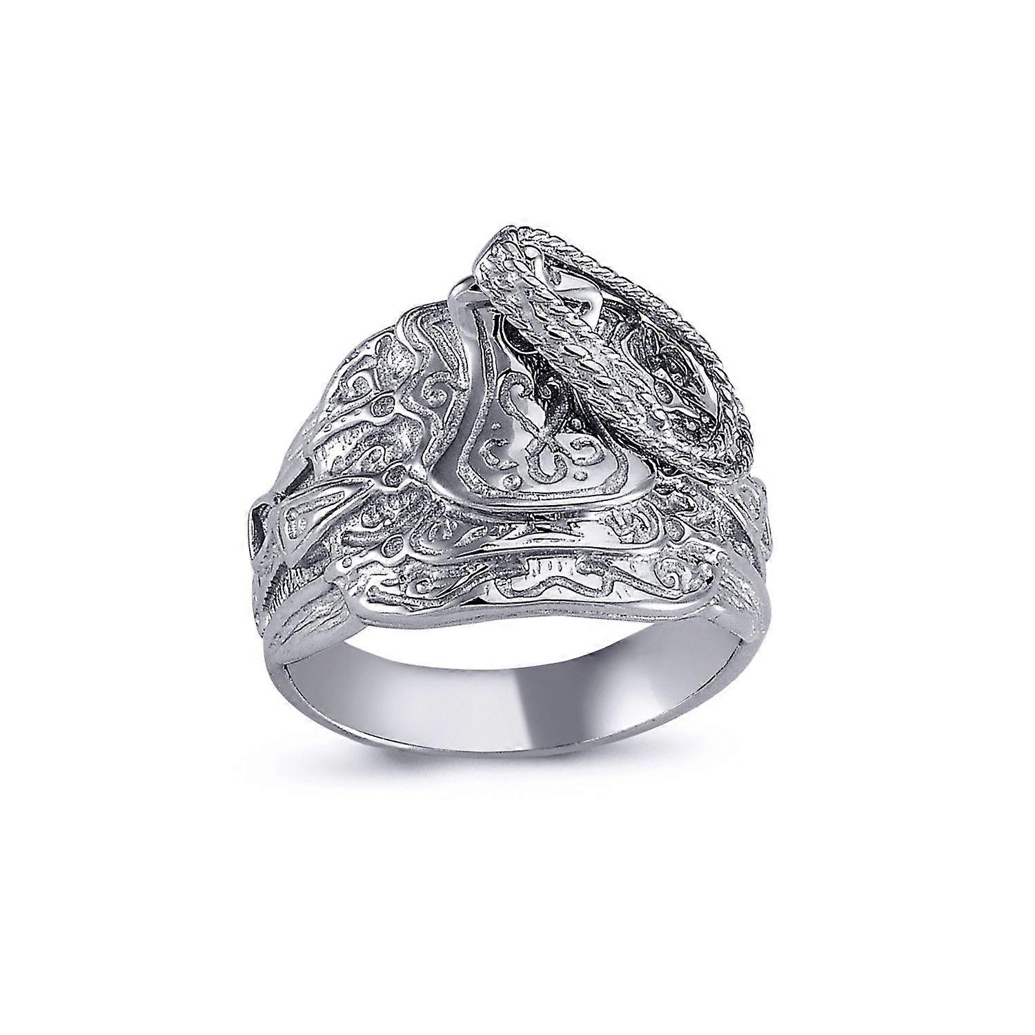 Jewelco London Mens Rhodium Plated Sterling Silver Horse Rope Saddle Ring 16mm