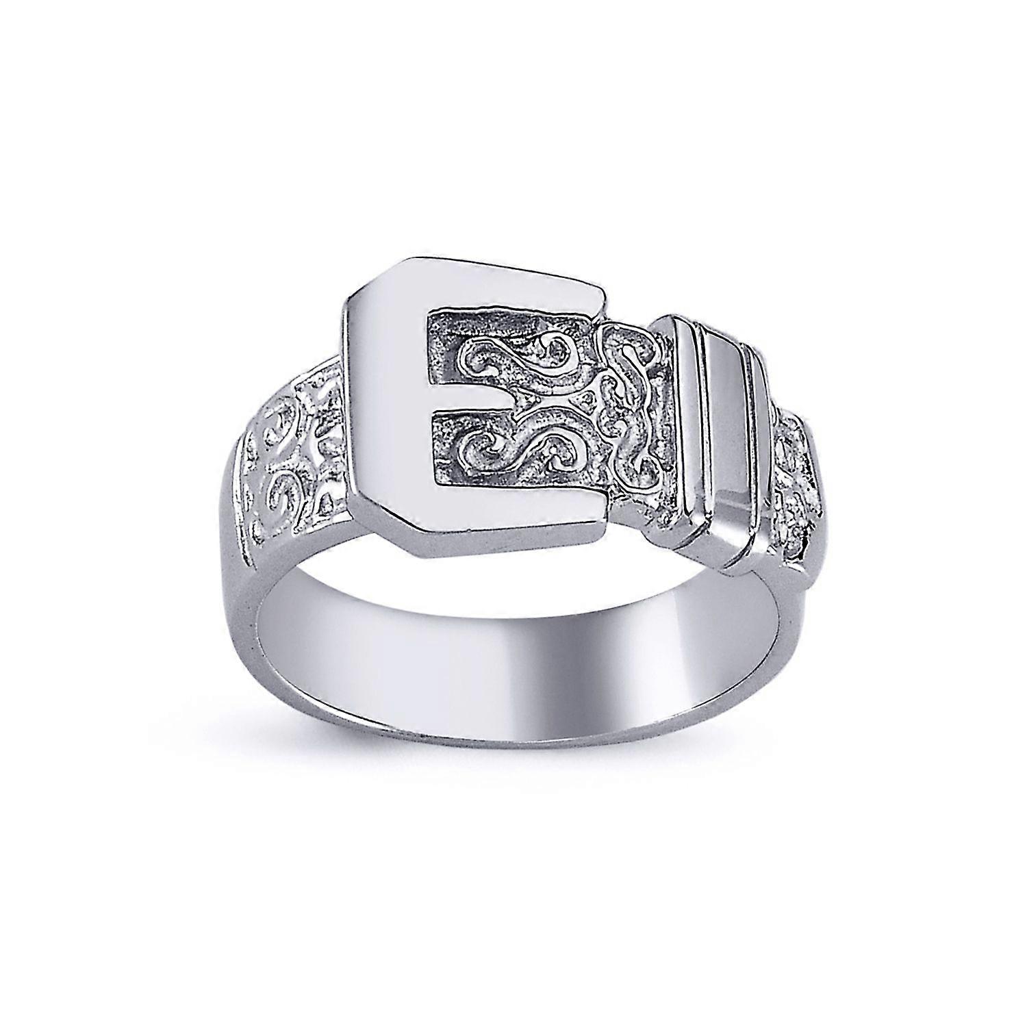 Jewelco London Mens Rhodium Plated Sterling Silver Round Cubic Zirconia Carved Buckle Love Ring 12mm