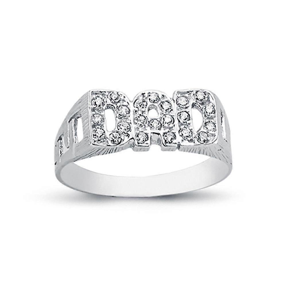 Jewelco London Mens Rhodium Plated Sterling Silver Round Cubic Zirconia DAD Signet ID Ring 8mm