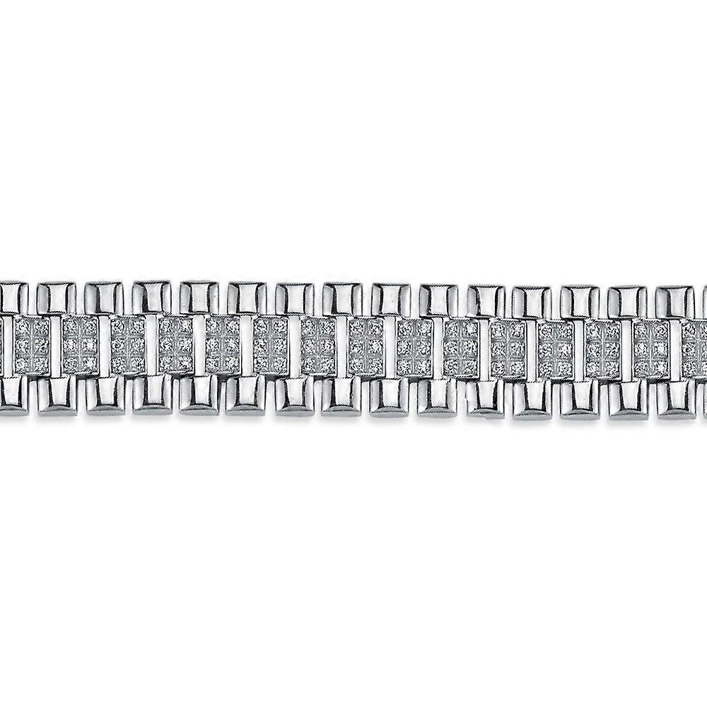 Jewelco London Mens Rhodium Plated Sterling Silver Round Cubic Zirconia Watch Link Bar Bracelet 15mm 8.5 inch