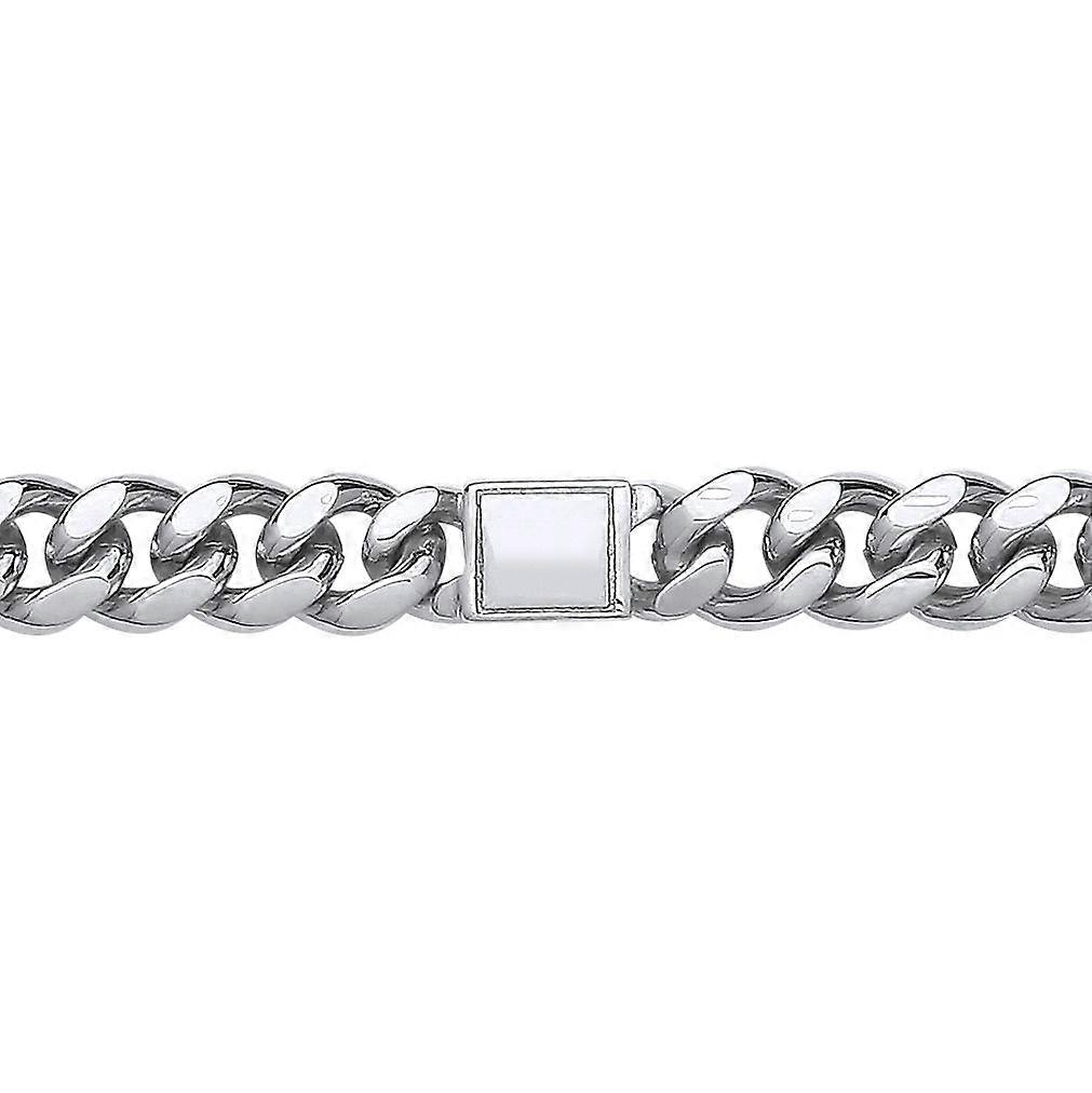 Jewelco London Mens Rhodium Plated Sterling Silver Square ID Bar Cuban Curb Link Chain Bracelet 8mm 8.5 inch