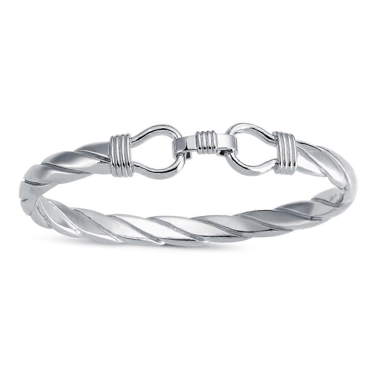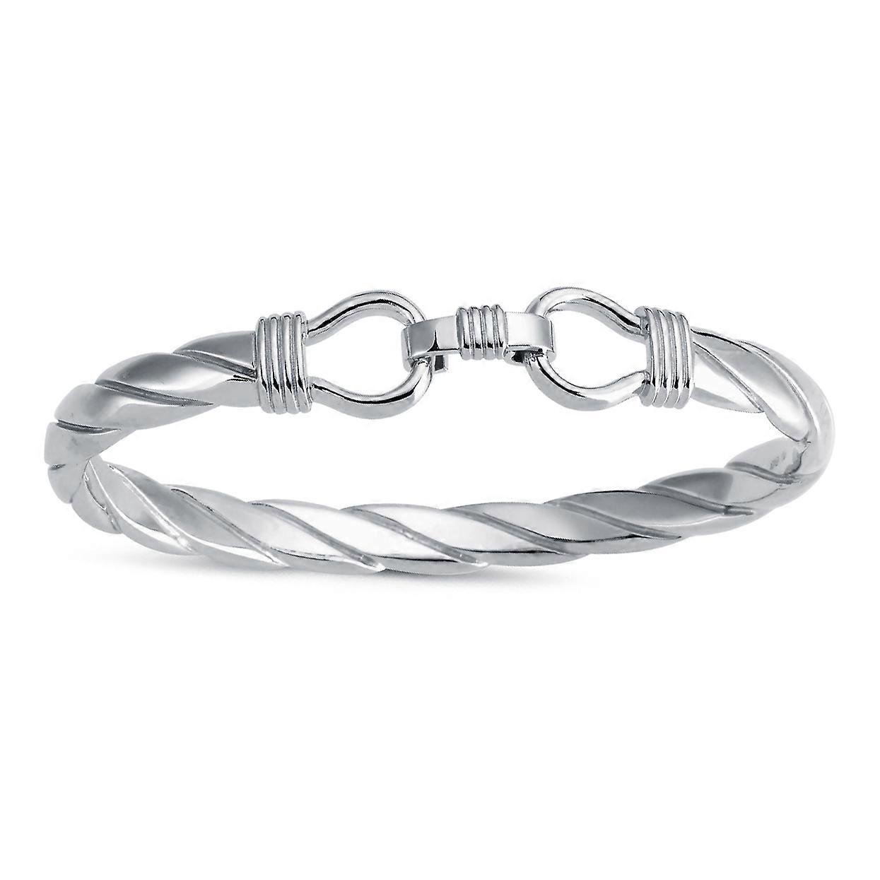 Jewelco London Mens Rhodium Plated Sterling Silver Twisted Stirrup Bangle Bracelet 8mm