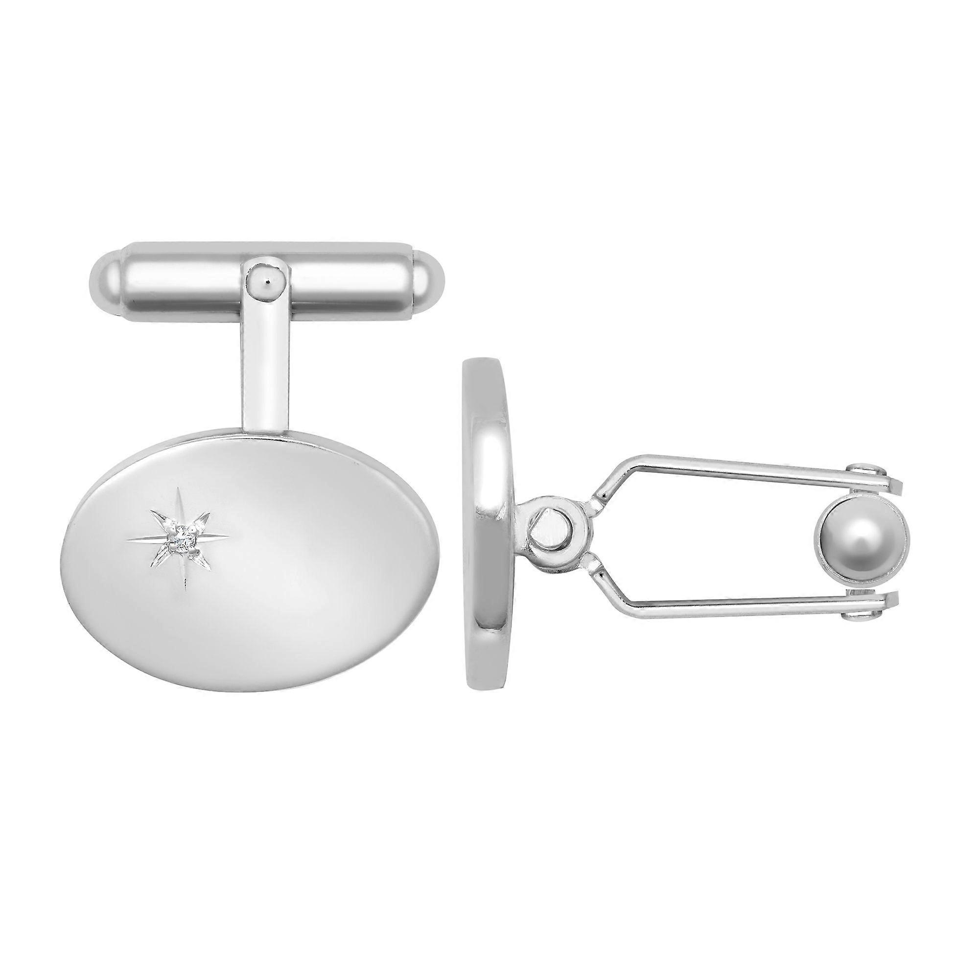 Jewelco London Men's Rhodium Plated Sterling Silver White Round Brilliant Diamond Star-set Solitaire Oval Swivel Back T-Bar Cufflinks