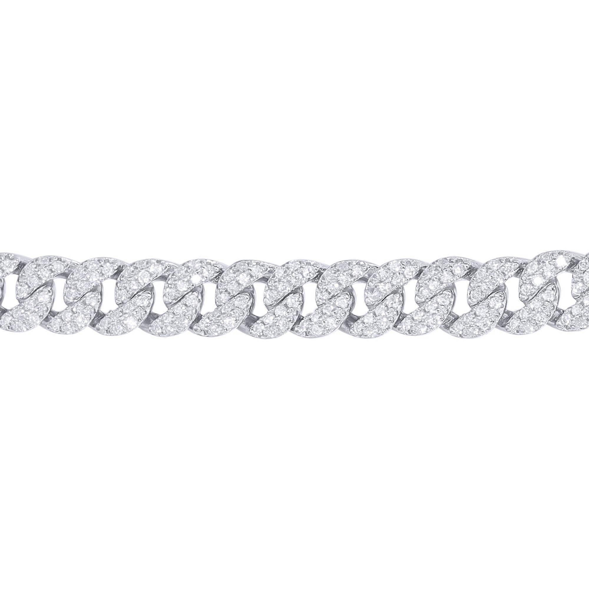 Jewelco London Men's Rhodium Silver Round CZ Encrusted Cuban Curb 6mm Chain Bracelet