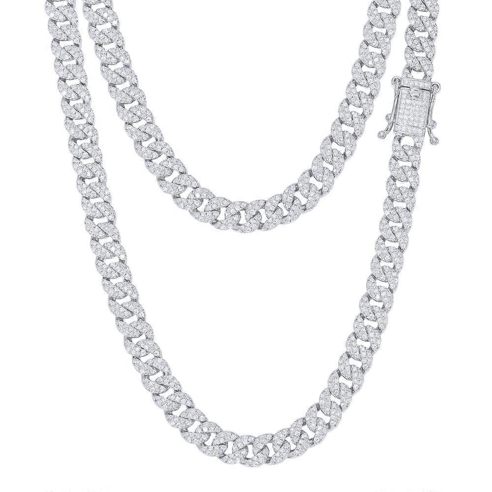 Jewelco London Men's Rhodium Silver Round CZ Encrusted Cuban Curb 6mm Chain Necklace