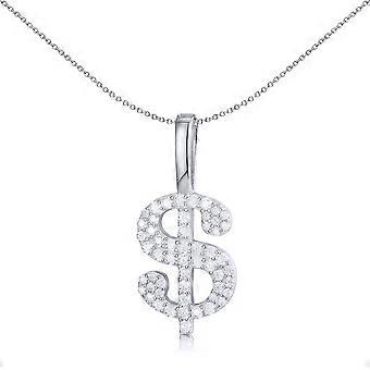 Jewelco London Men's Rhodium Silver Round CZ Encrusted Dollar Sign Charm Pendant