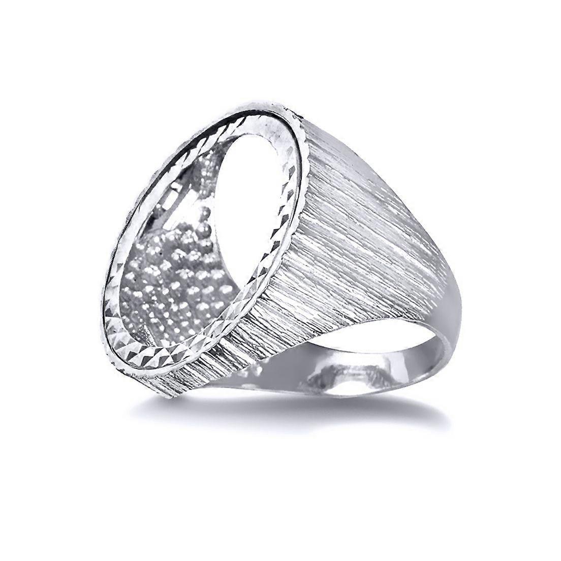 Jewelco London Men's Solid 925 Silver Ribbed Barked Full Sovereign Mount Ring