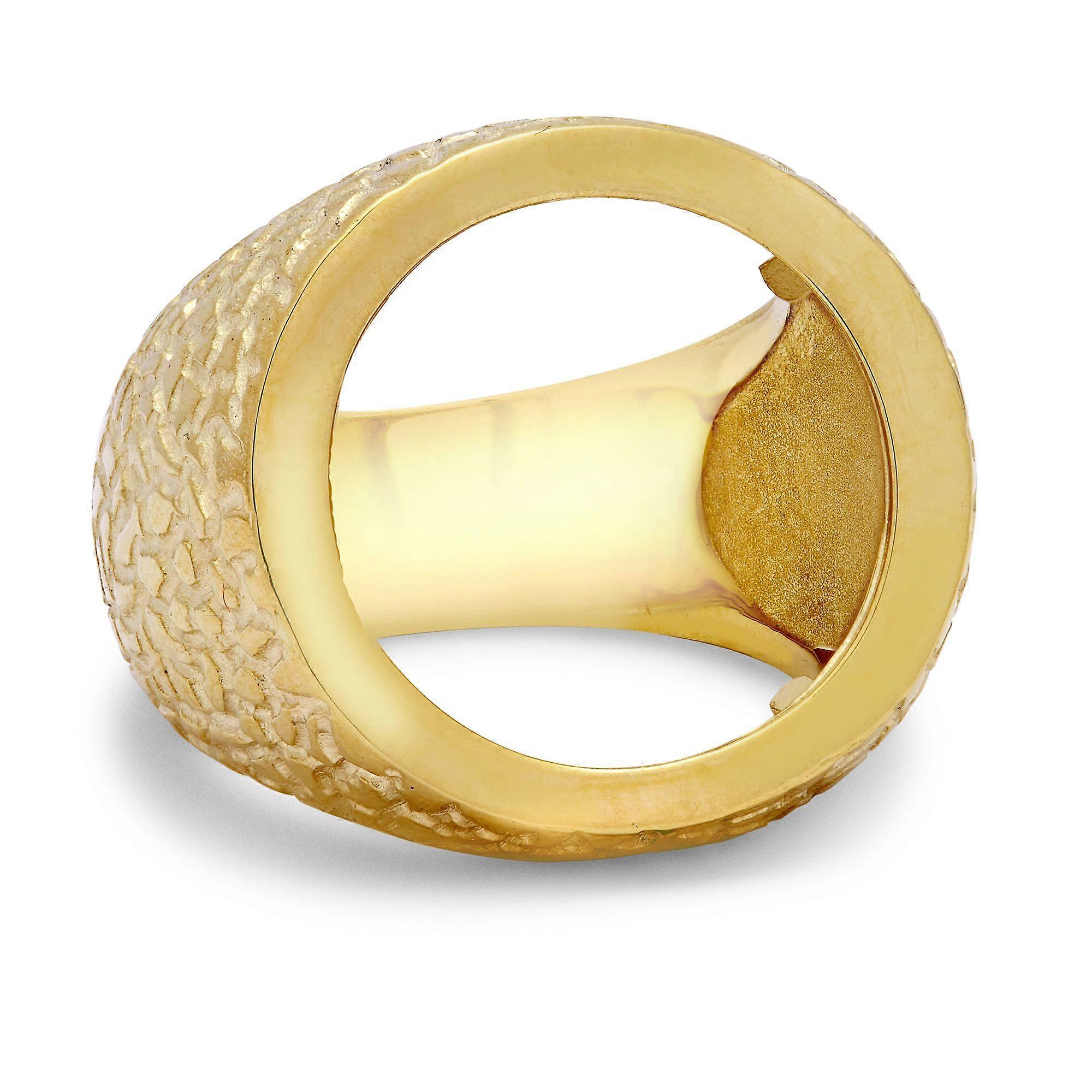 Jewelco London Men's Solid 9ct Yellow Gold 1oz Crocodile Skin Round Bezel Full Sovereign Coin Mount Ring