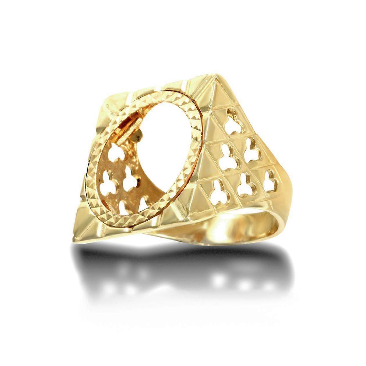 Jewelco London Men's Solid 9ct Yellow Gold Clubs Clovers Square Top Half Sovereign Mount Ring