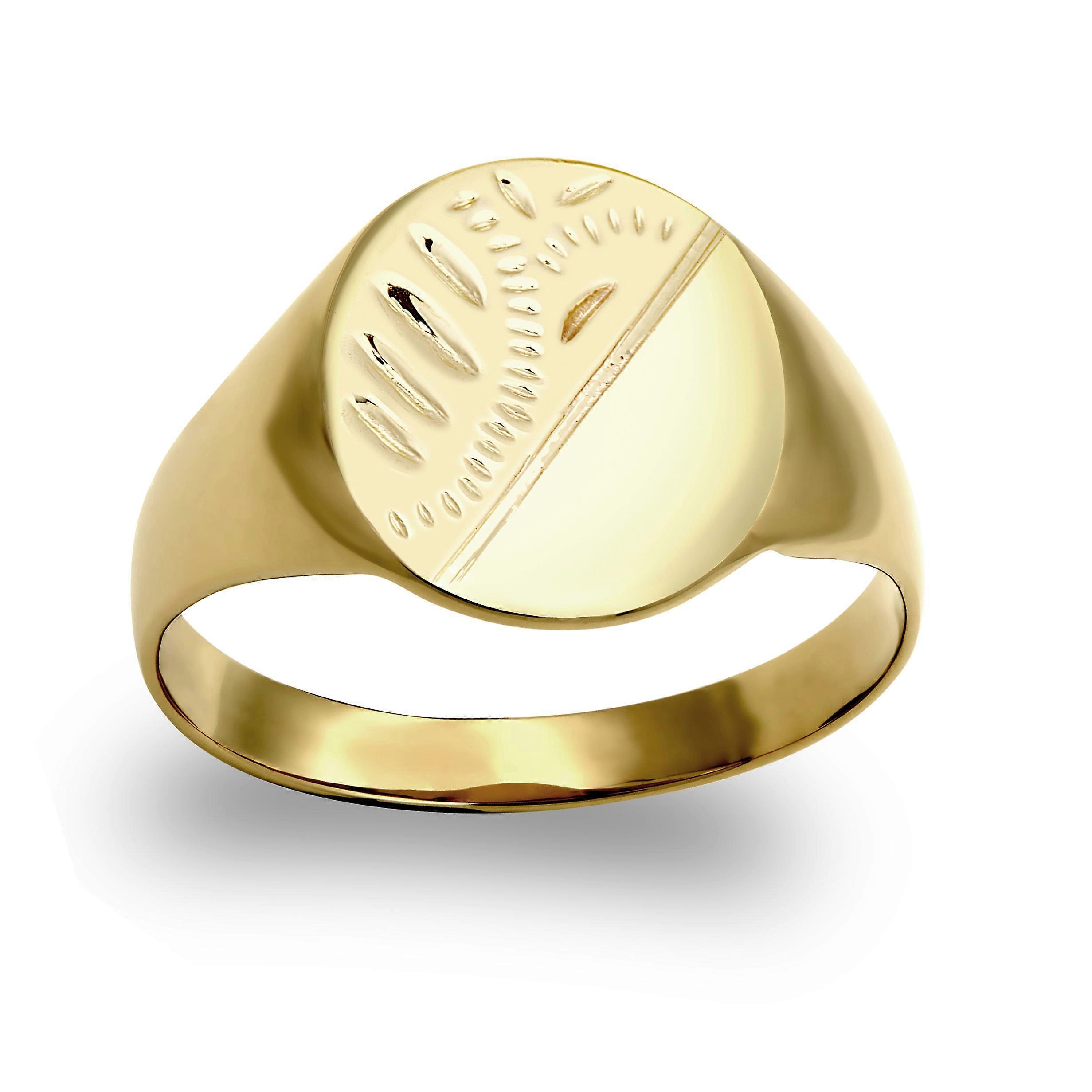 Jewelco London Men's Solid 9ct Yellow Gold Diamond Cut Oval Signet Ring. The signet ring has been around since the old testament and is considered the gentleman's ring. It was used as a personal signature or family heritage. This signet ring bears all the hallmarks of tradition and is carefully crafted from solid 9ct gold by experienced jewellers. Perfect for daily wear. Width: 13.5mm Gauge: 1.1mm Weight: 3.4g SKU: JRN135