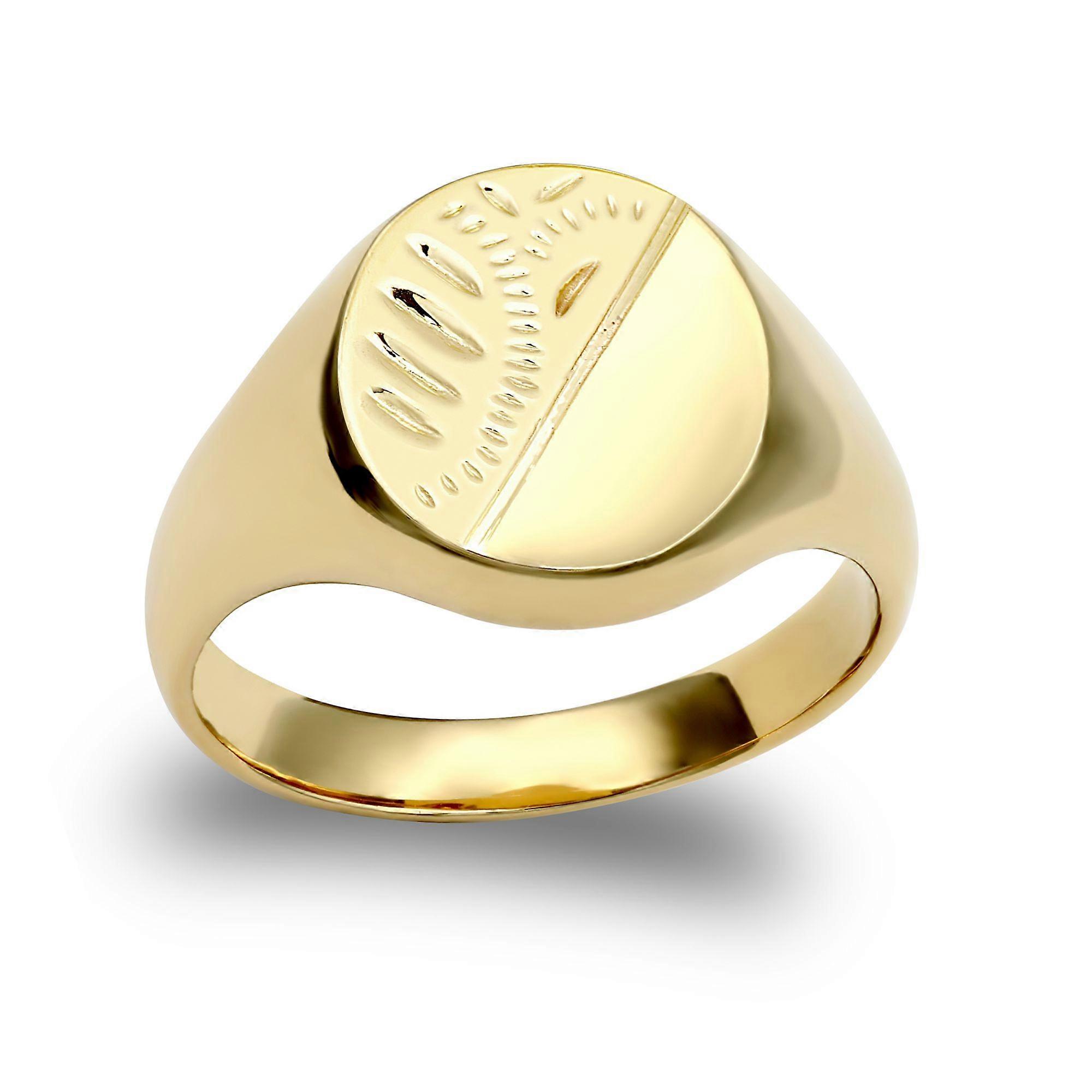 Jewelco London Men's Solid 9ct Yellow Gold Diamond Cut Oval Signet Ring
