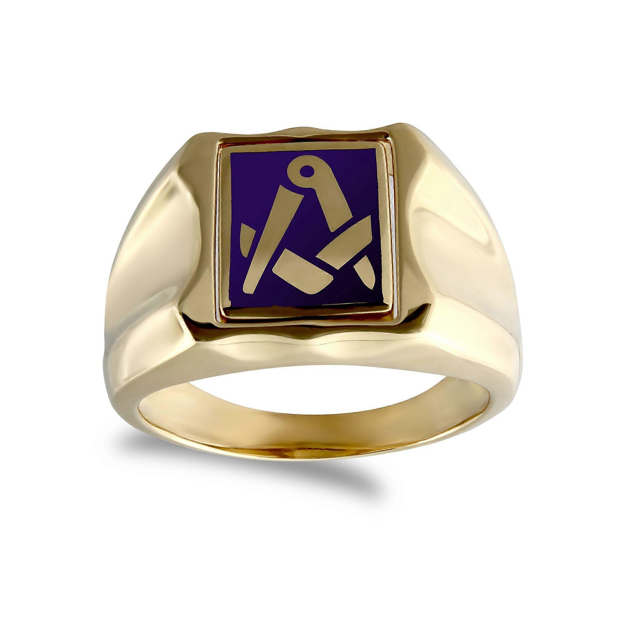 Jewelco London Men's Solid 9ct Yellow Gold Enamel Swivel Centre Rectangular Masonic Ring