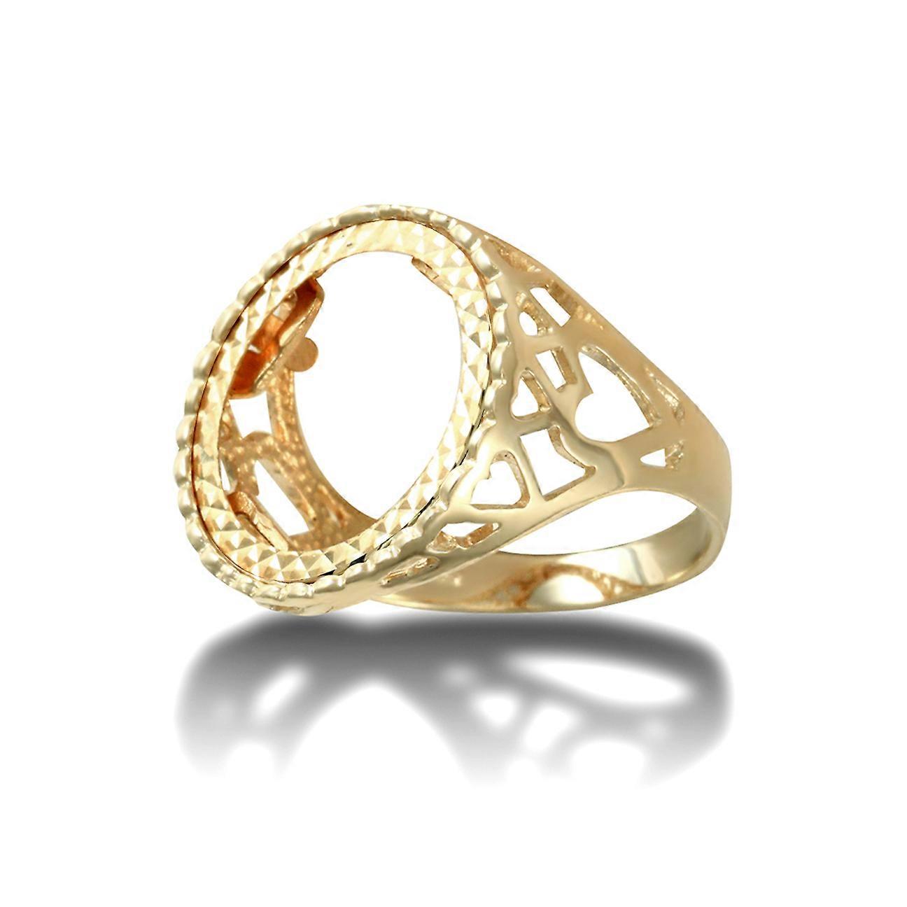 Jewelco London Men's Solid 9ct Yellow Gold Love Hearts Tenth Ounce Krugerrand Brittania Coin Mount Ring