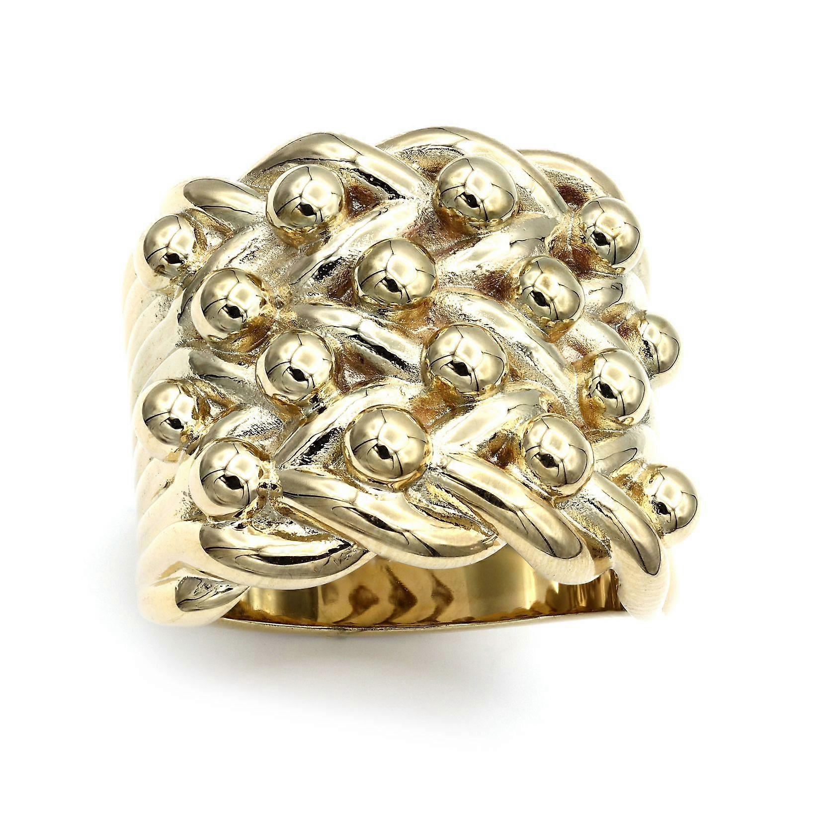 Jewelco London Men's Solid Gold-plated Silver 4 Row King George III Keeper Guard Rope Edge Ring