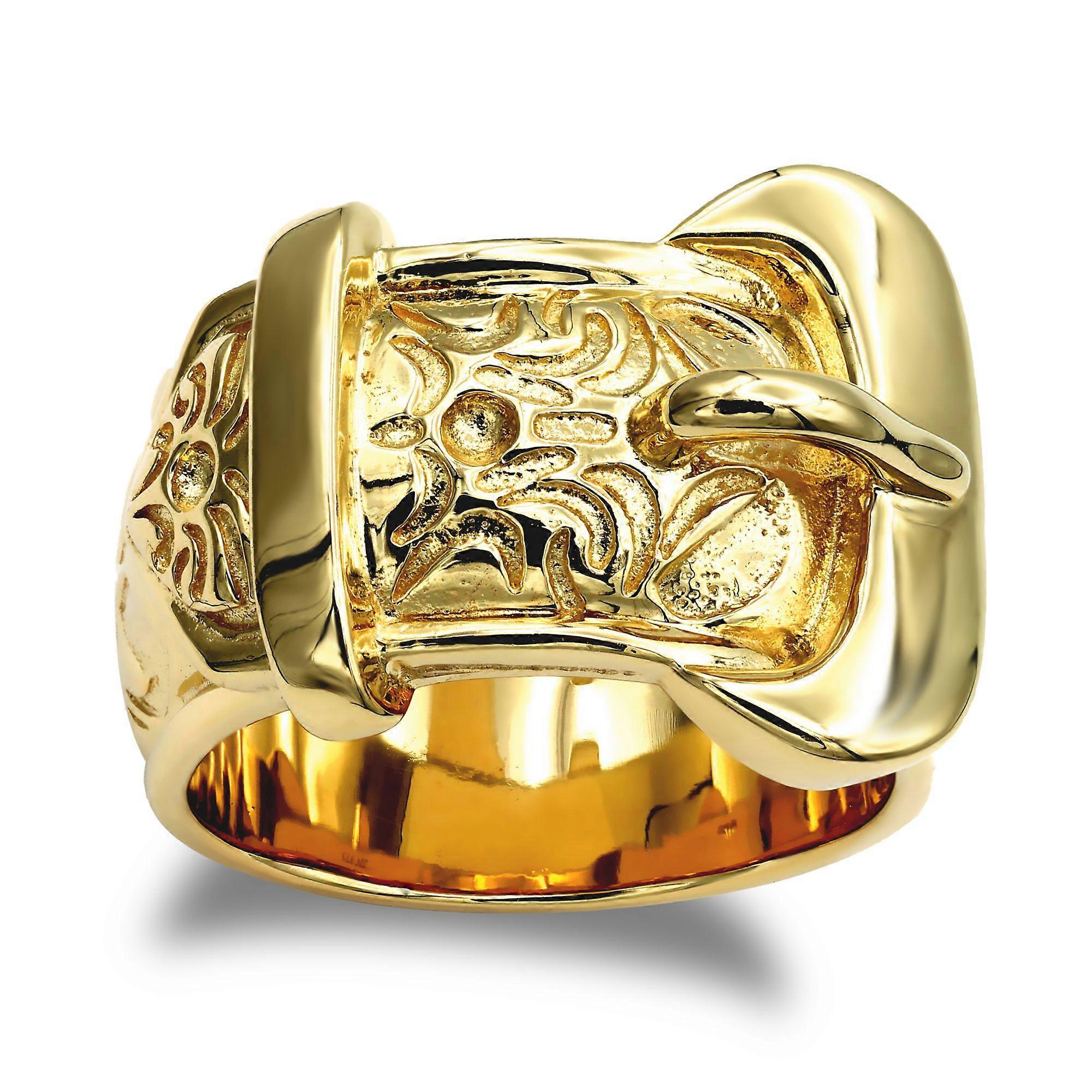 Jewelco London Men's Solid Gold-plated Silver Single Buckle Ring