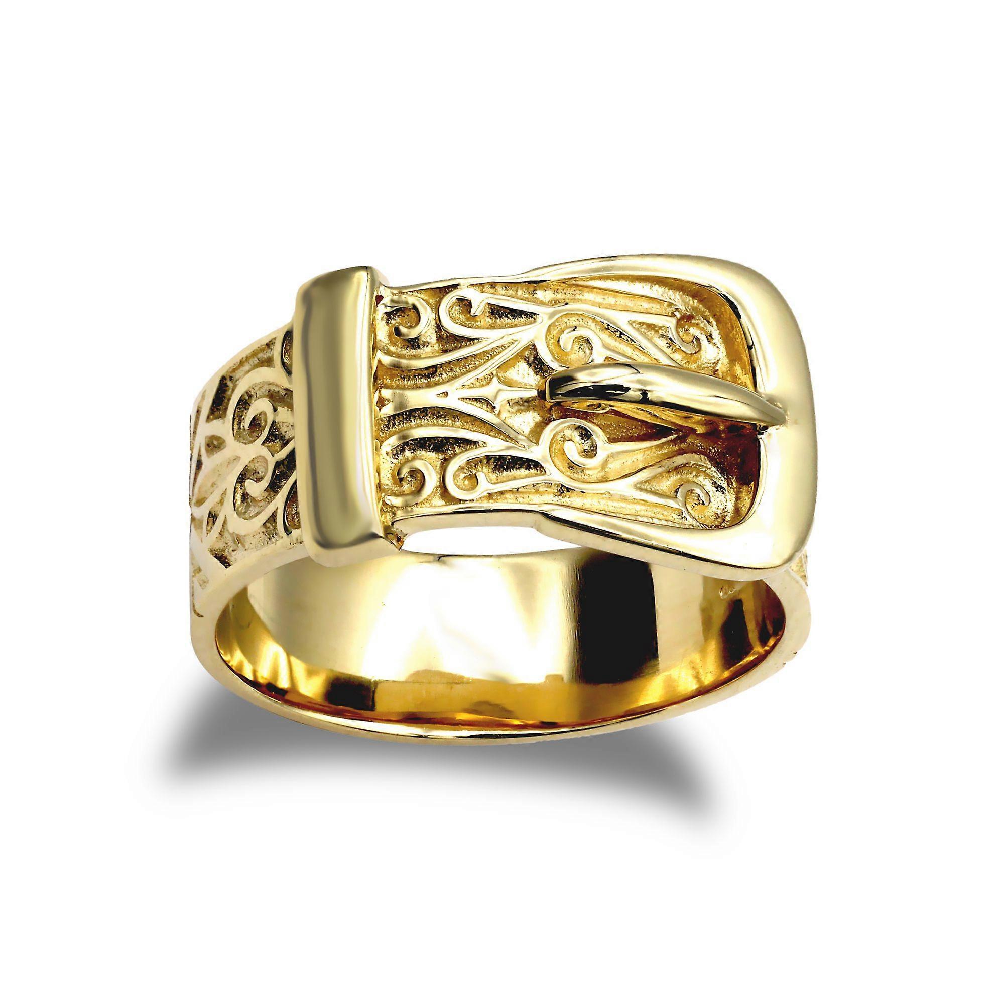 Jewelco London Men's Solid Hallmarked Gold-plated 925 Sterling Silver Single Buckle Ring 10mm