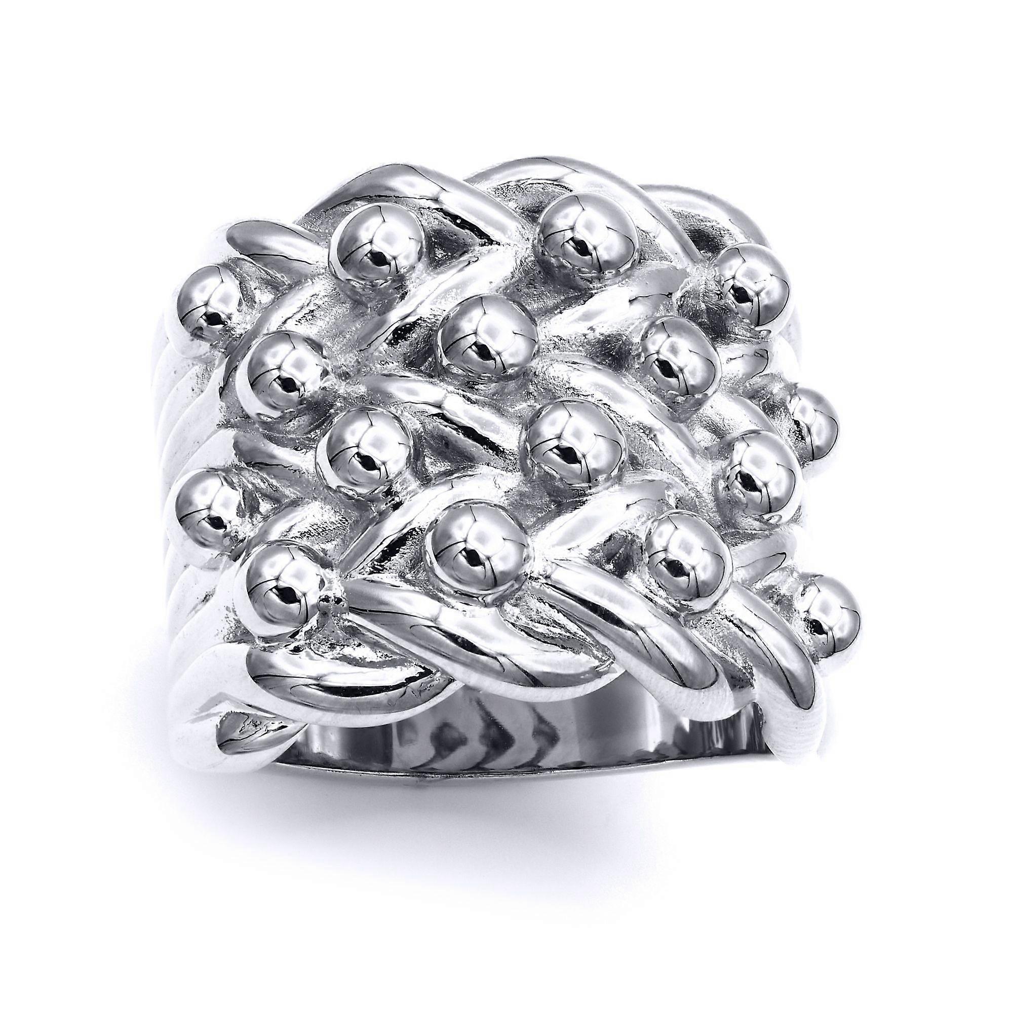 Jewelco London Men's Solid Rhodium-plated Silver 4 Row King George III Keeper Guard Rope Edge Ring