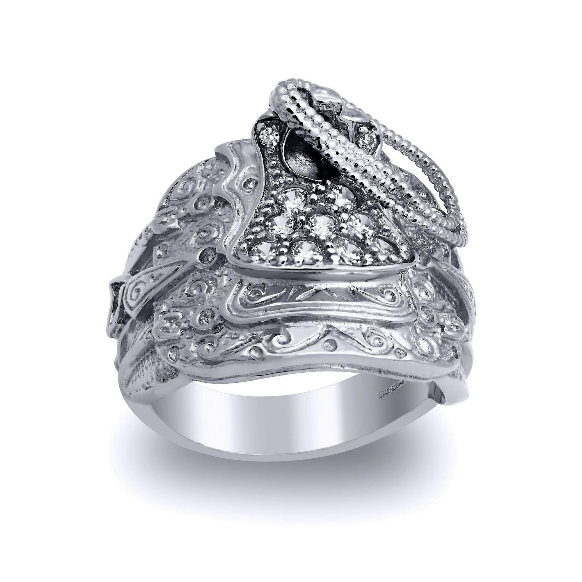 Jewelco London Men's Solid Rhodium-plated Silver White Round Brilliant Cubic Zirconia Horse Saddle Rope Ring