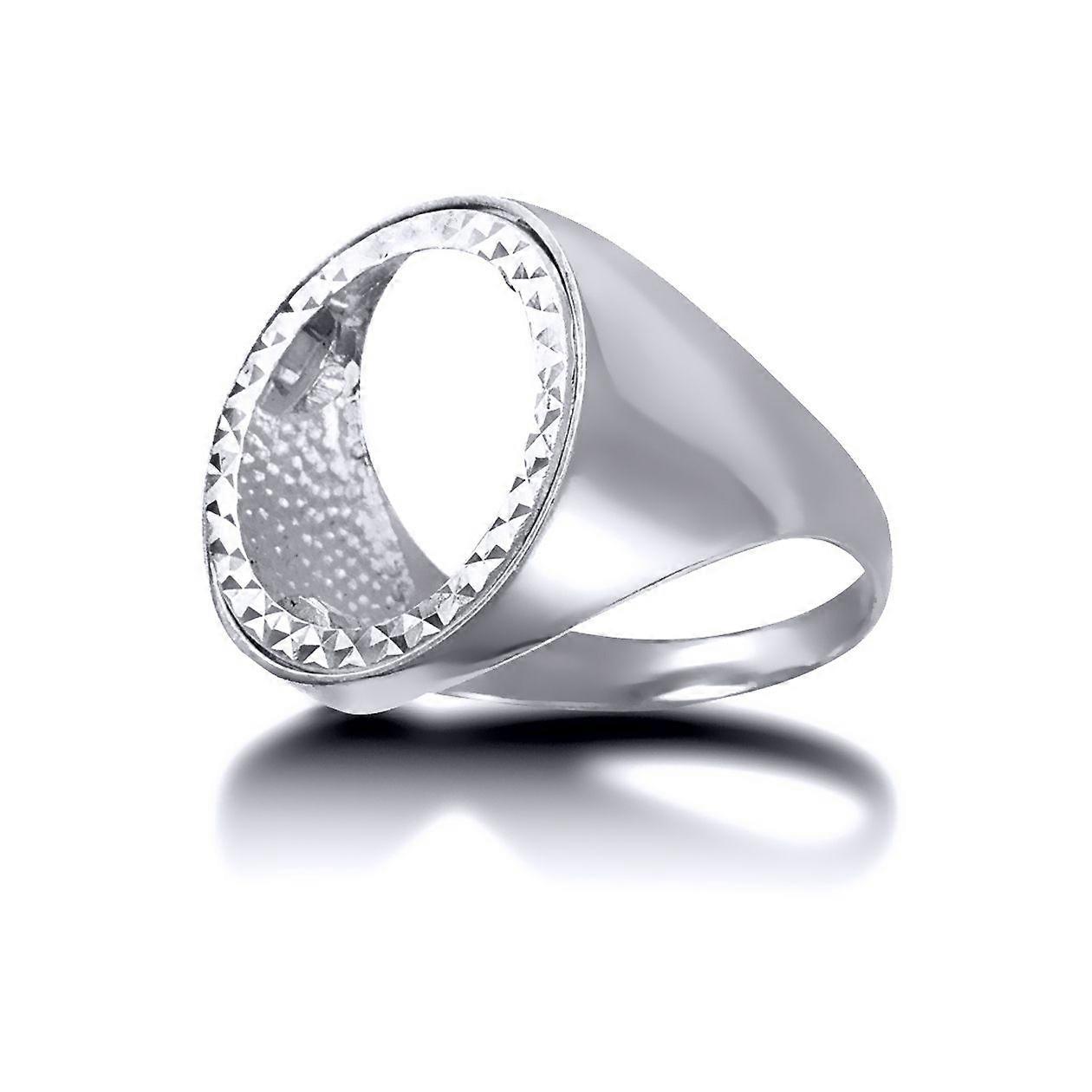Jewelco London Men's Solid Sterling Silver Domed Polished Half Sovereign Mount Ring