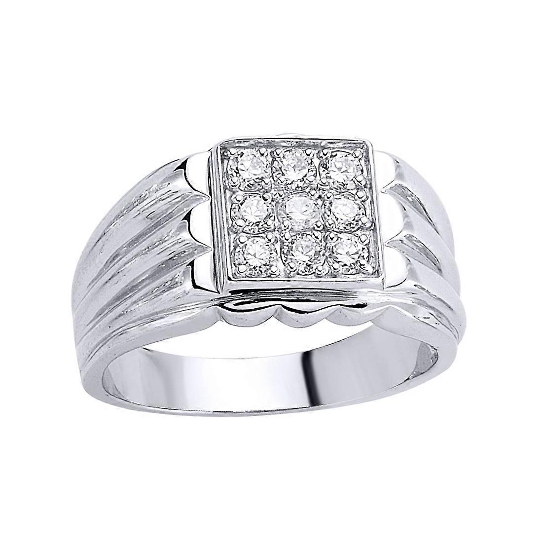 Jewelco London Mens Sterling Silver Cubic Zirconia 9 Stone Cluster Signet Ring