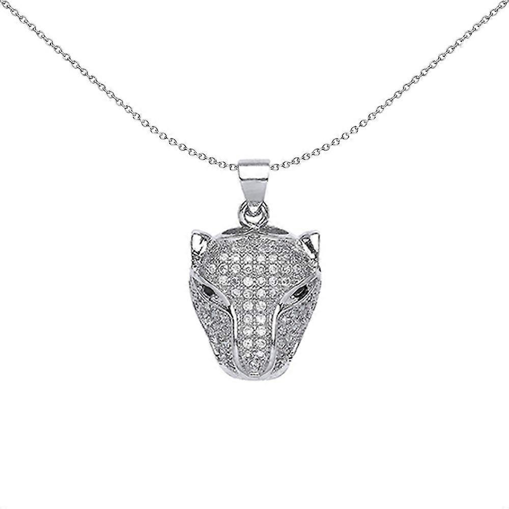 Jewelco London Mens Sterling Silver Cubic Zirconia Panther Charm Necklace 18 inch