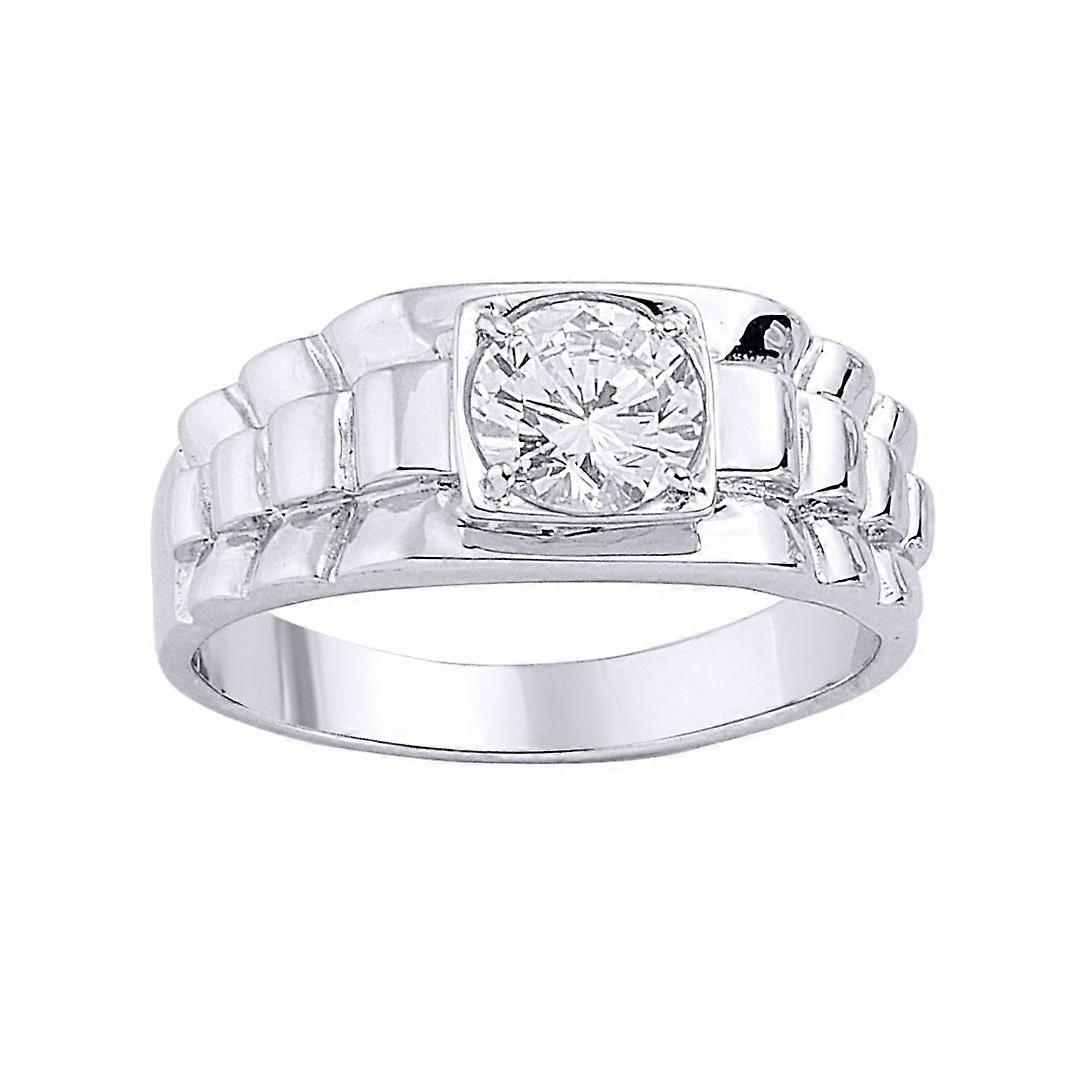 Jewelco London Mens Sterling Silver Cubic Zirconia Watch Strap Solitaire Signet Ring