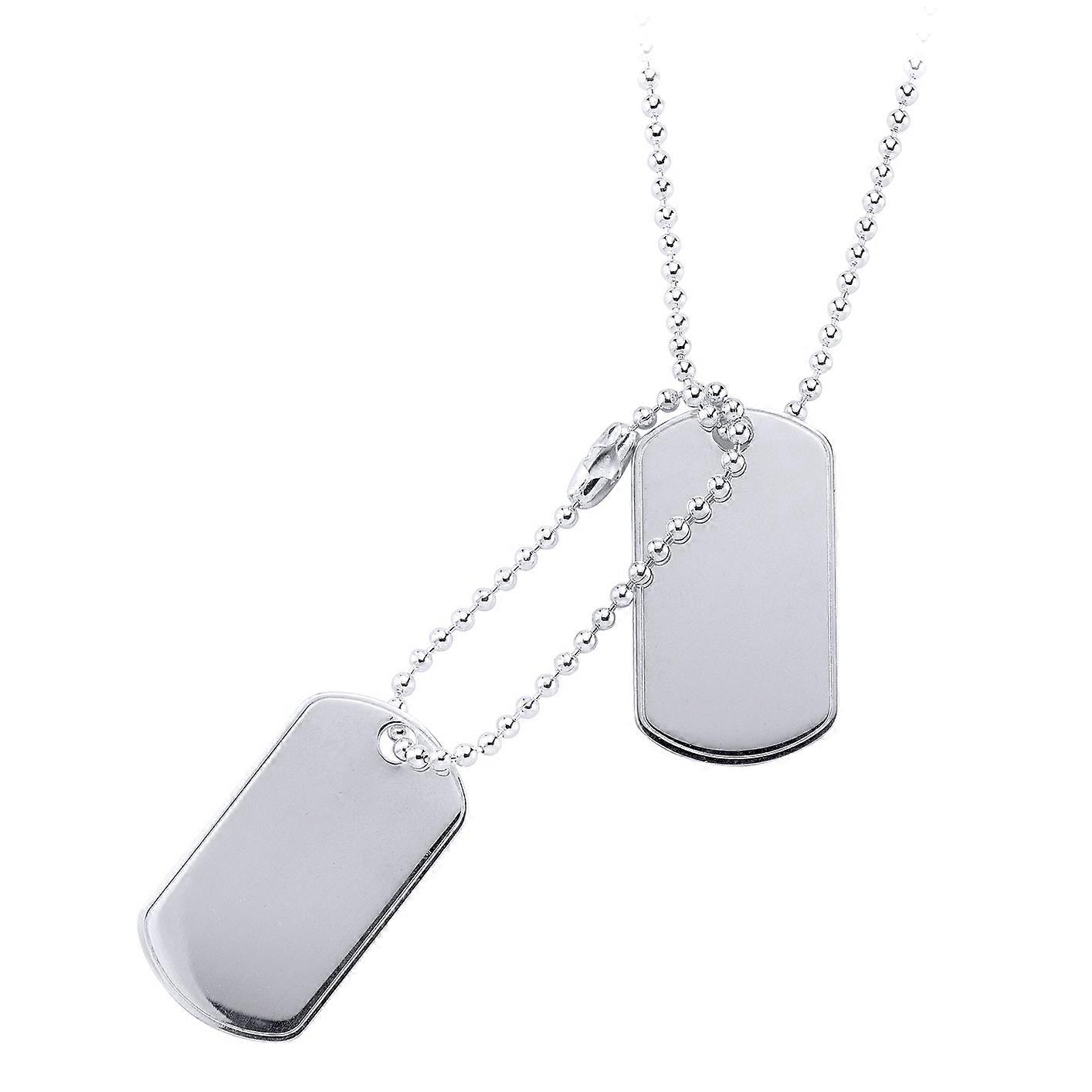 Jewelco London Mens Sterling Silver Military Double Dog Tag Pendant Necklace 20 inch
