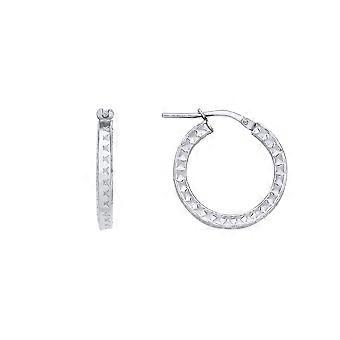 Jewelco London Platinum Plated Sterling Silver Diamond-cut Square Tube Hoop Earrings 20mm 2.5mm