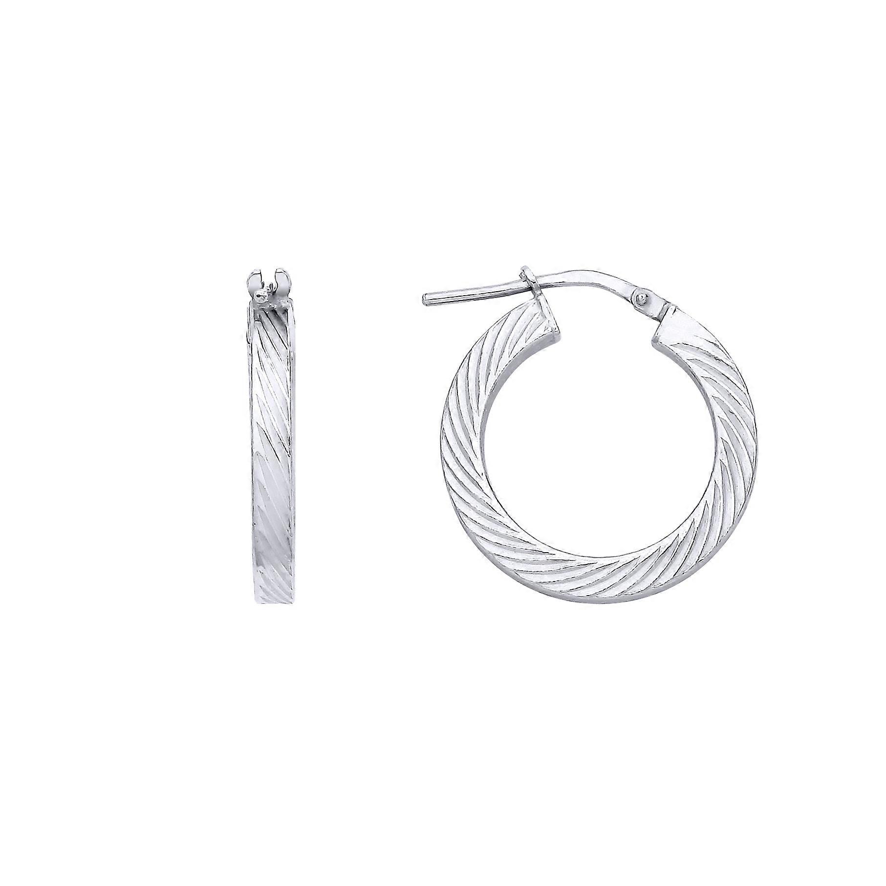 Jewelco London Platinum Plated Sterling Silver Feathered Swirl Flat Hoop Creole Earrings 21mm 3mm