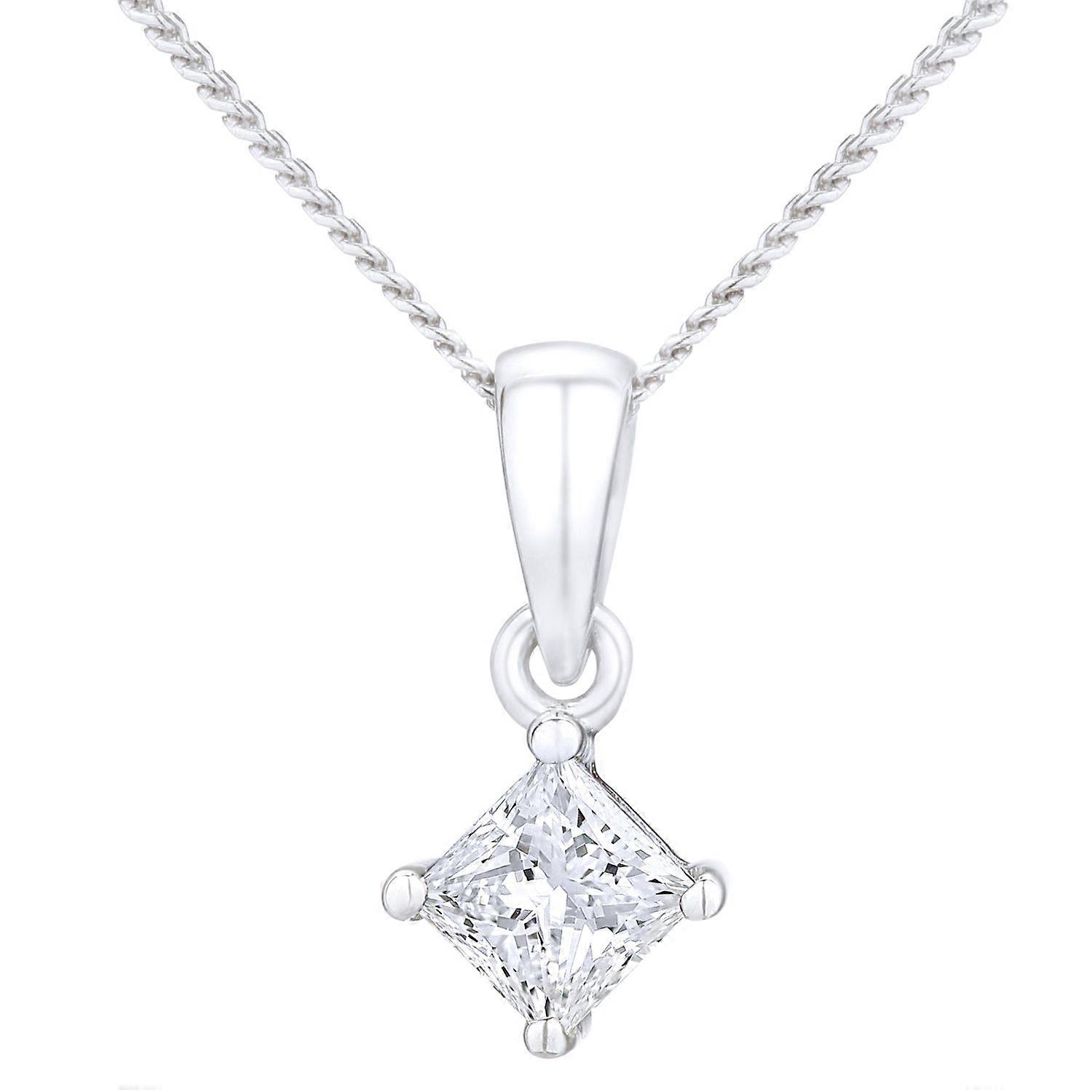 Jewelco London Platinum Princess 1/4ct Diamond Solitaire Pendant Necklace 18 inch 46cm