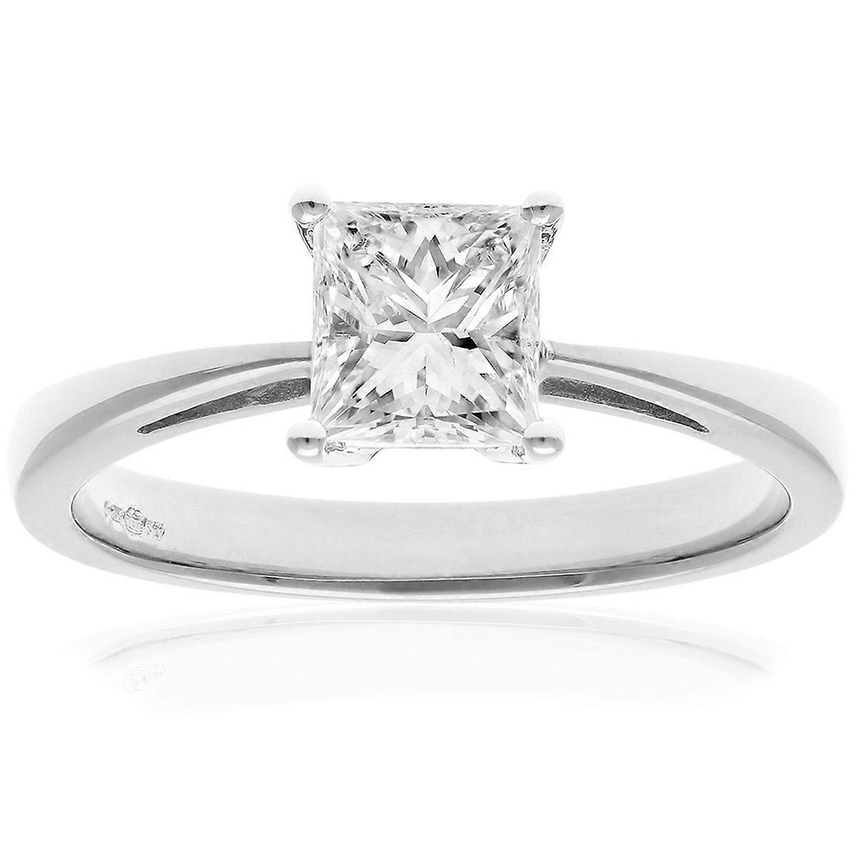 Jewelco London Platinum Princess 1ct Diamond 4 Claw Solitaire Engagement Ring 6mm