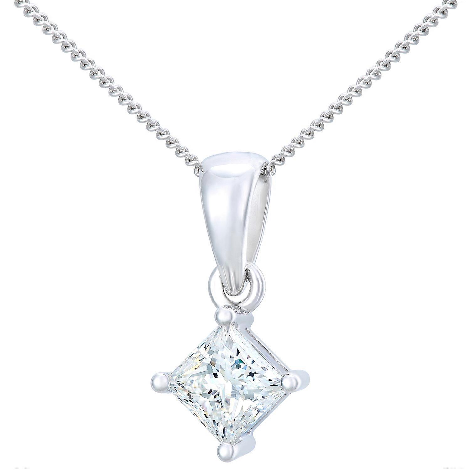 Jewelco London Platinum Princess 3/4ct Diamond Solitaire Pendant Necklace 18 inch 46cm