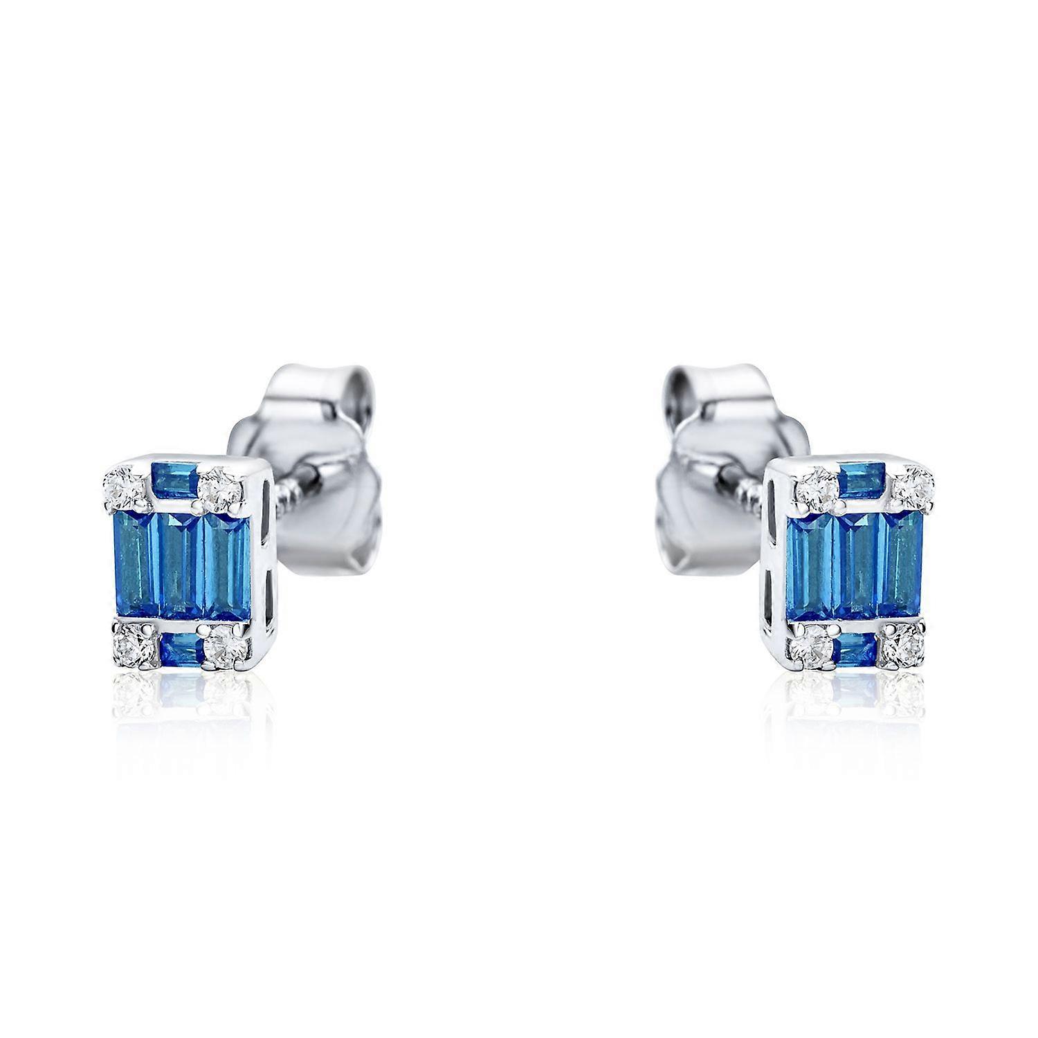 Jewelco London Rhodium Plated Sterling Silver Blue Cubic Zirconia Illusion Solitaire Cluster Stud Earrings