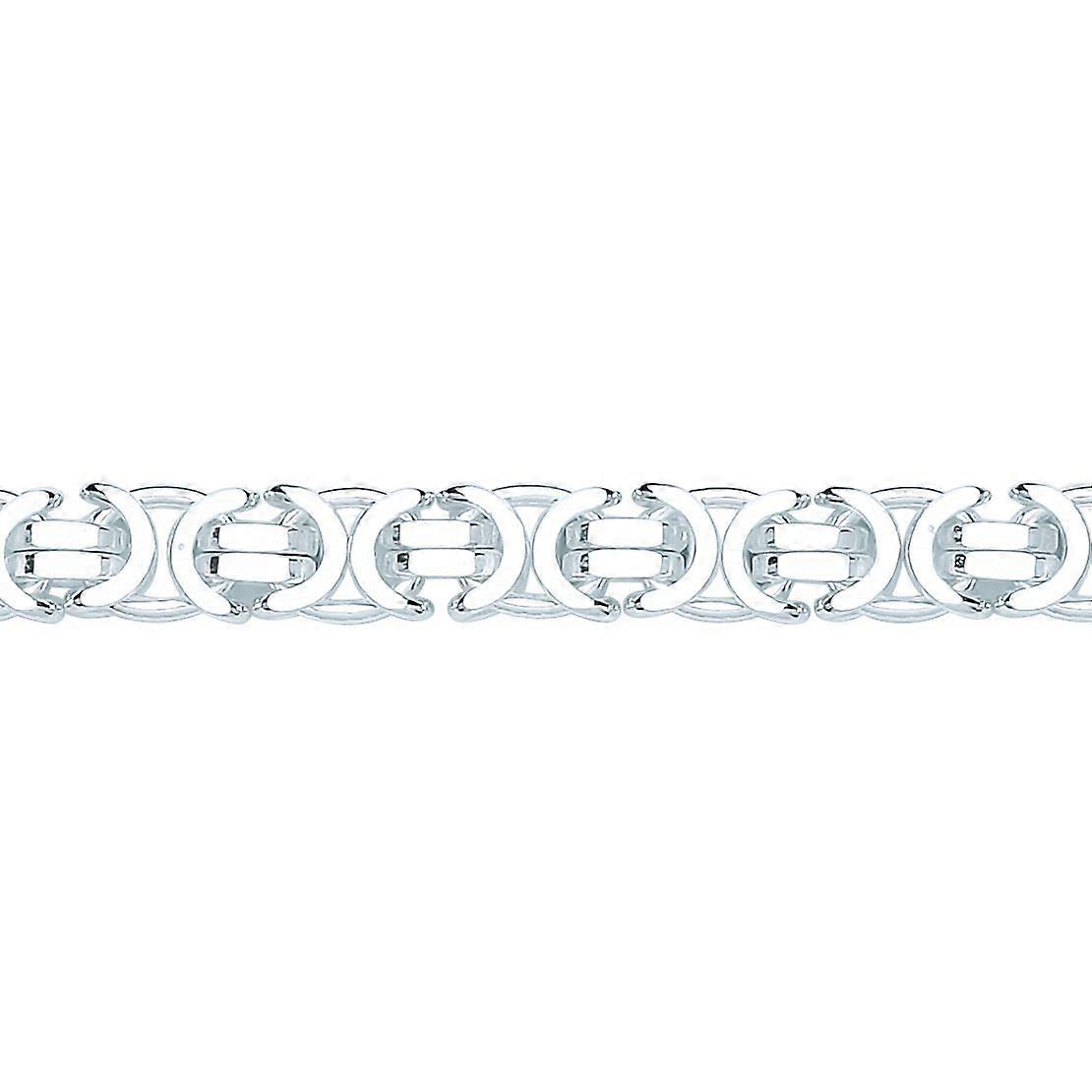 Jewelco London Rhodium Plated Sterling Silver Flat Byzantine Chain Necklace 7mm